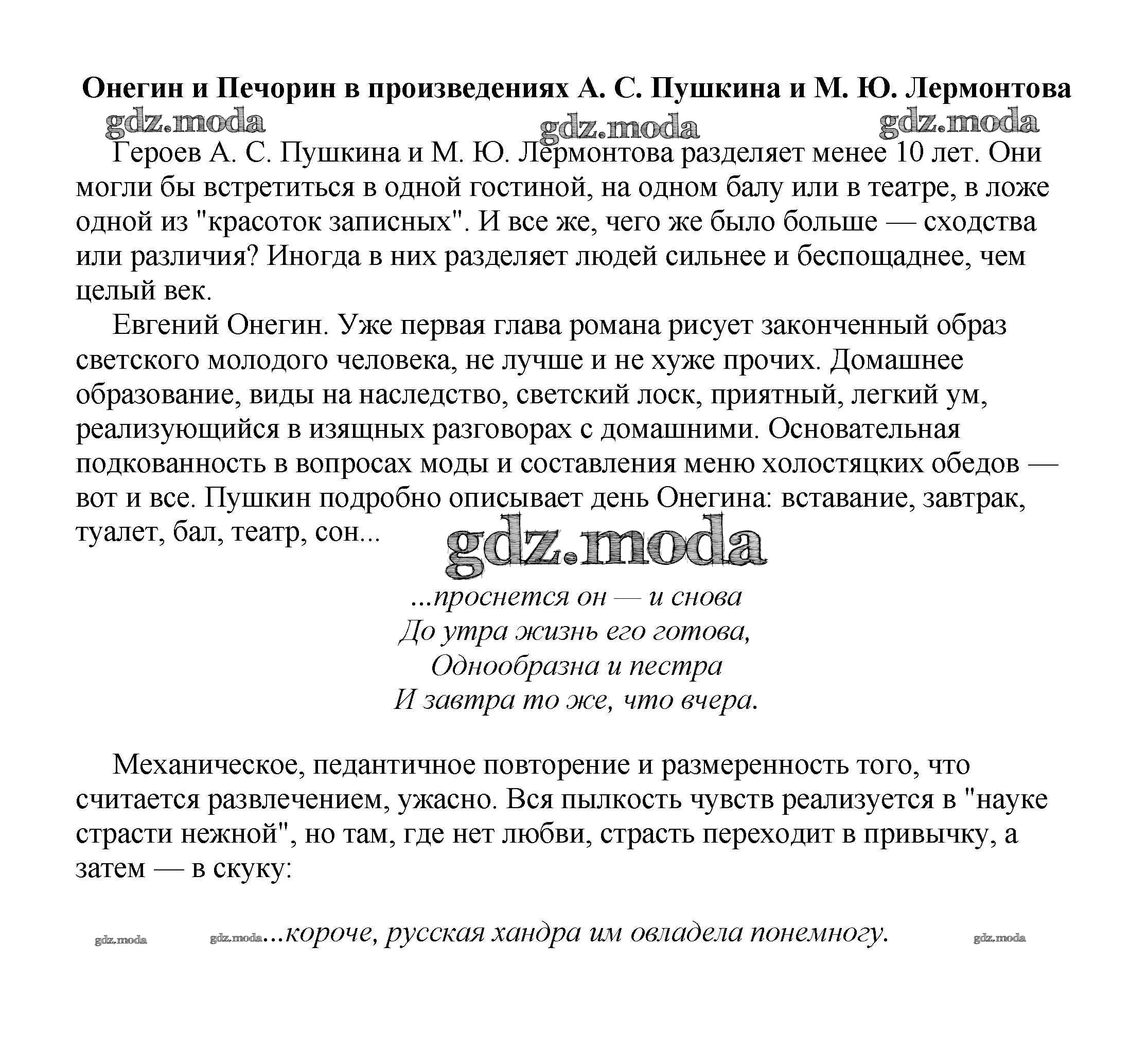 ОТВЕТ на задание № Онегин и Печорин в произведениях А. С. Пушкина и М. Ю. Лермонтова Сочинения по Литературе 5-10 класс Белик