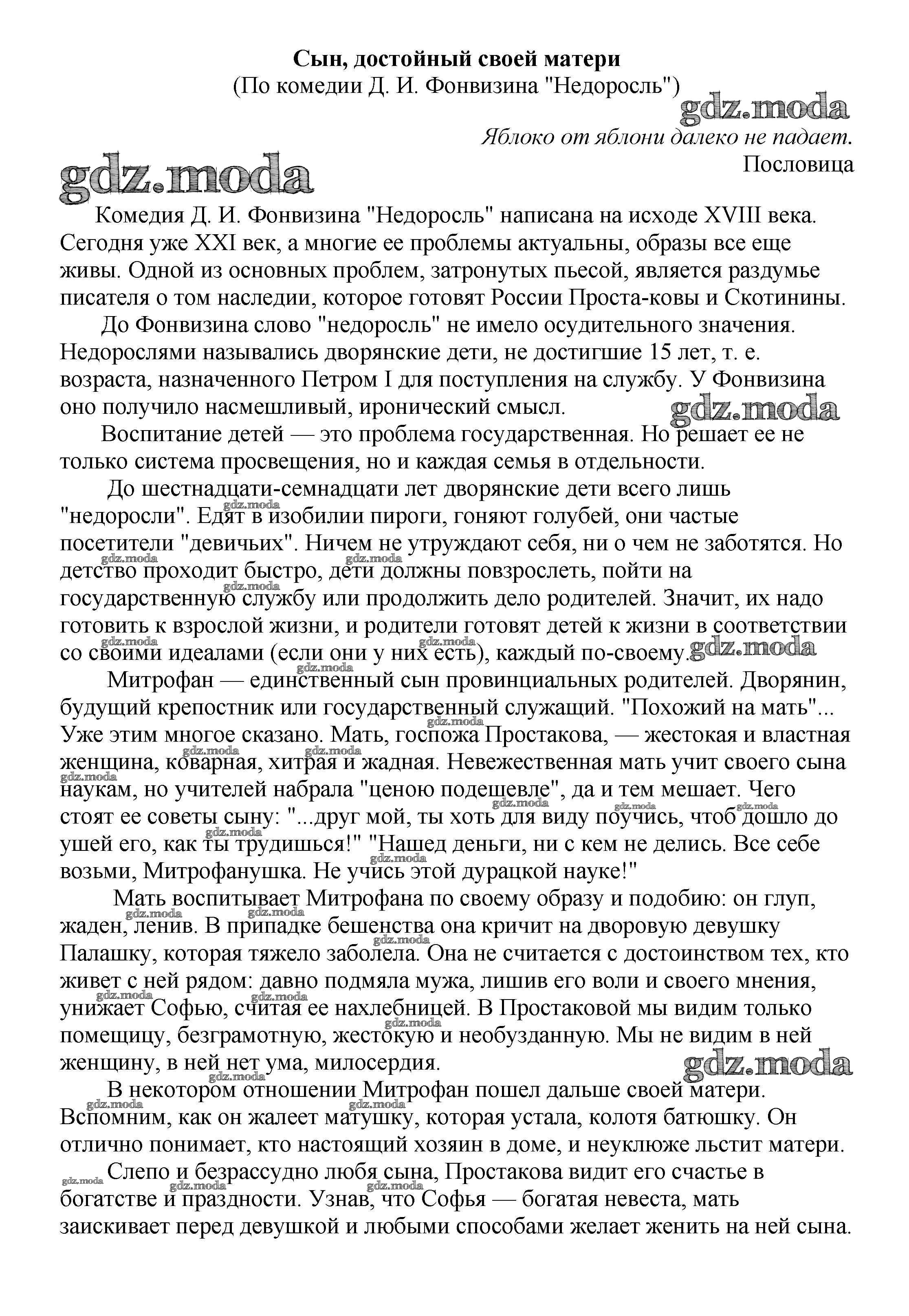 ОТВЕТ на задание № Сын, достойный своей матери (По комедии Д. И. Фонвизина "Недоросль") Сочинения по Литературе 5-10 класс Белик