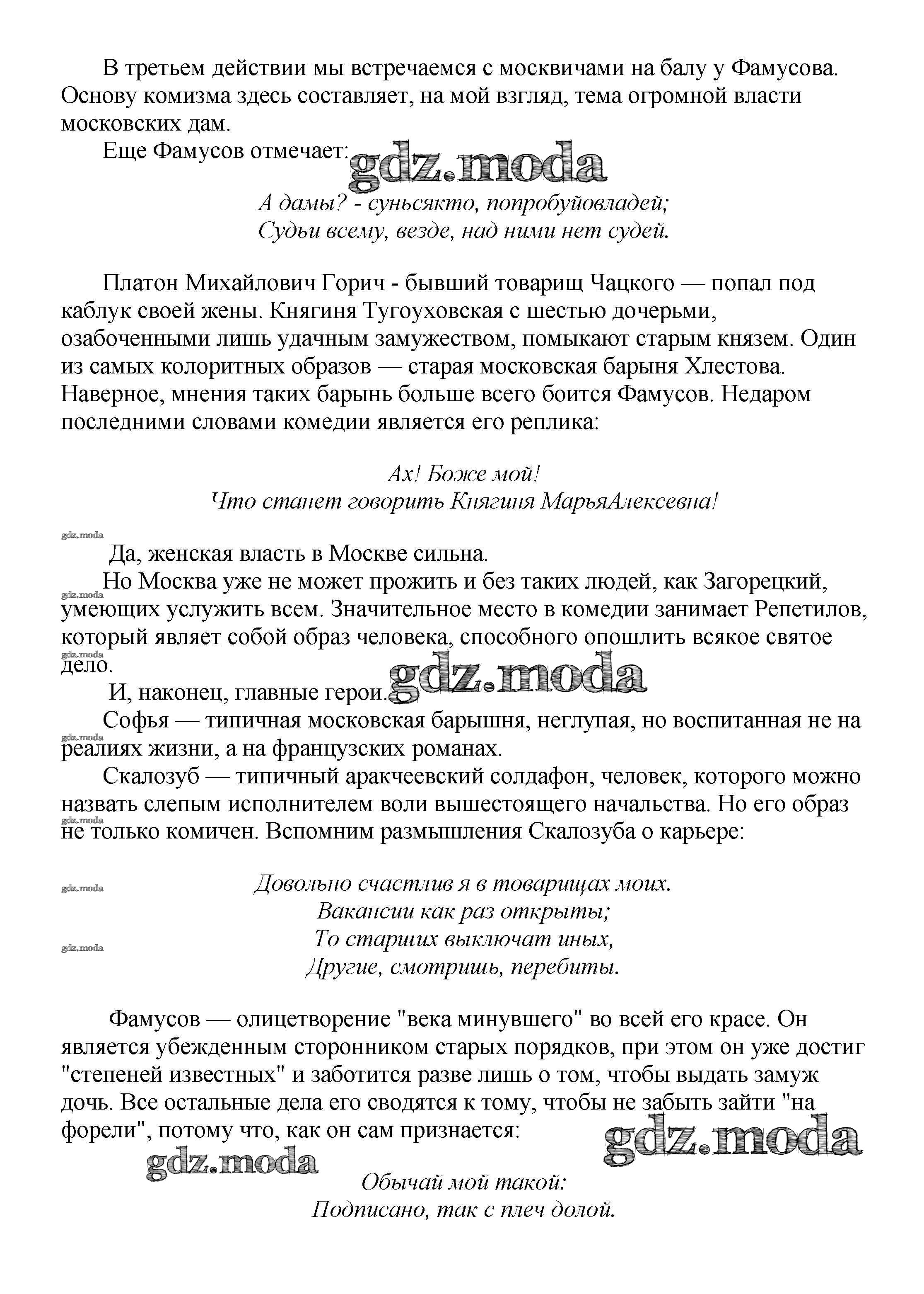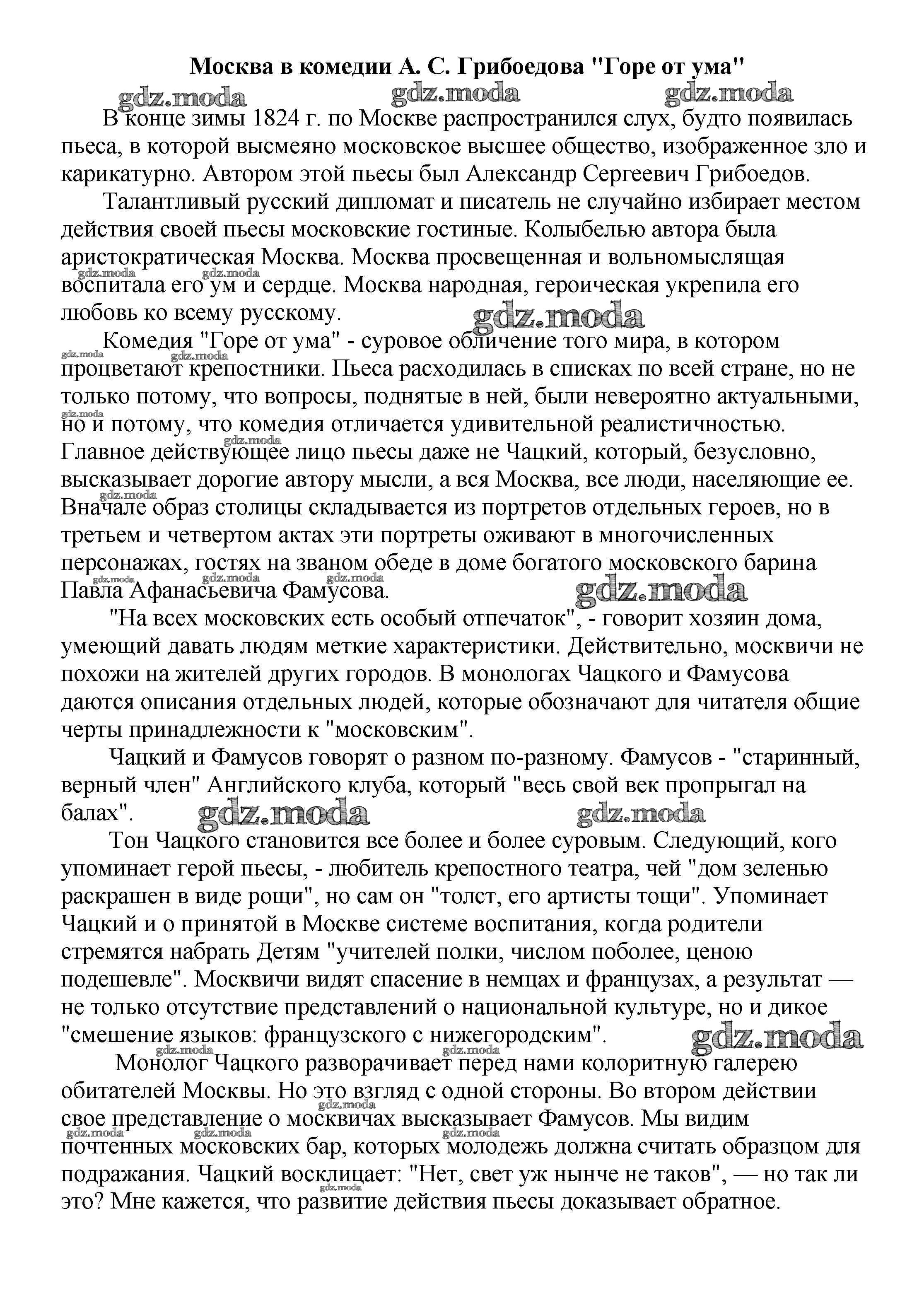 ОТВЕТ на задание № Москва в комедии А. С. Грибоедова "Горе от ума" Сочинения по Литературе 5-10 класс Белик