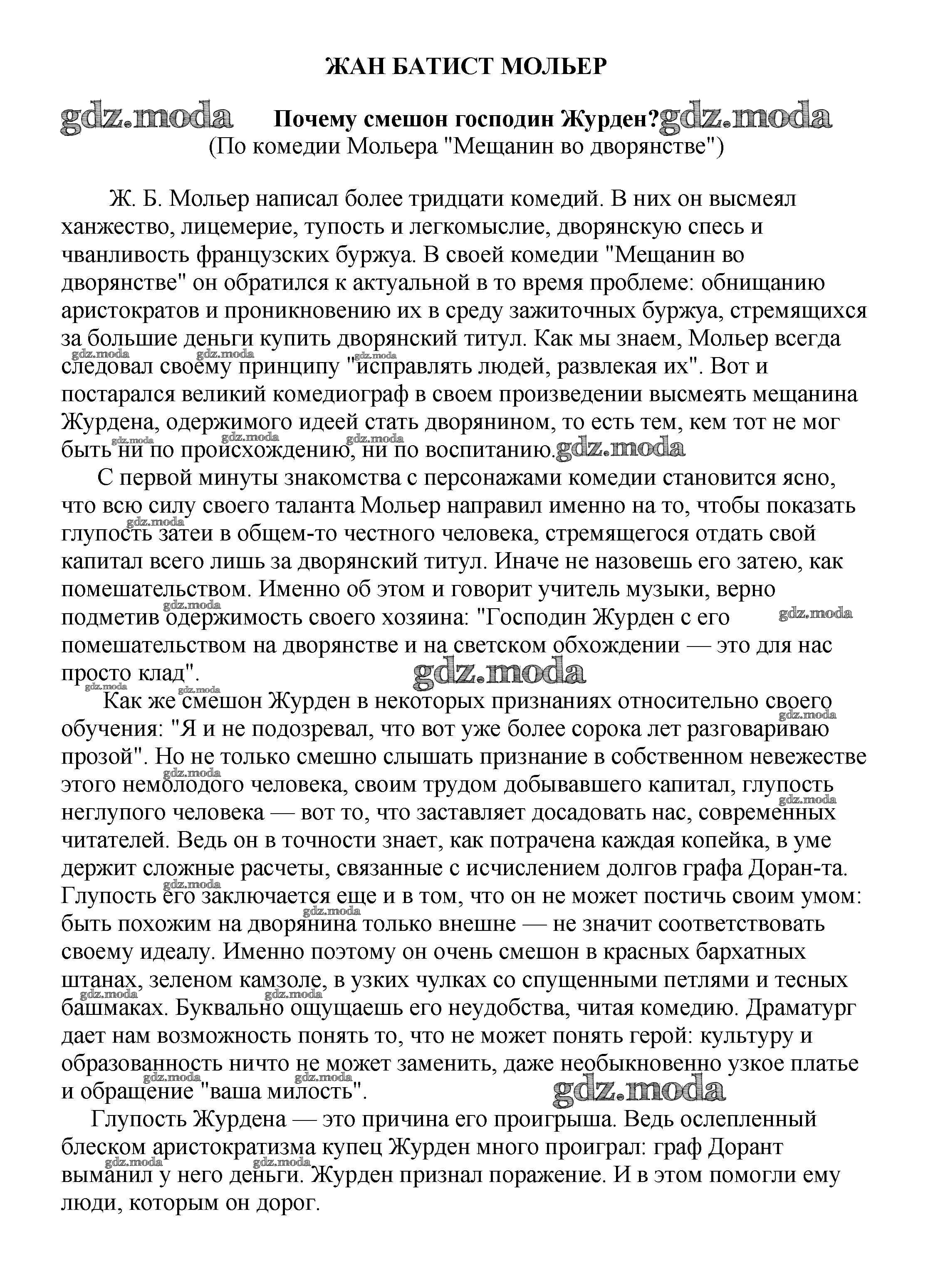 ОТВЕТ на задание № Почему смешон господин Журден? (По комедии Мольера "Мещанин во дворянстве") Сочинения по Литературе 5-10 класс Белик