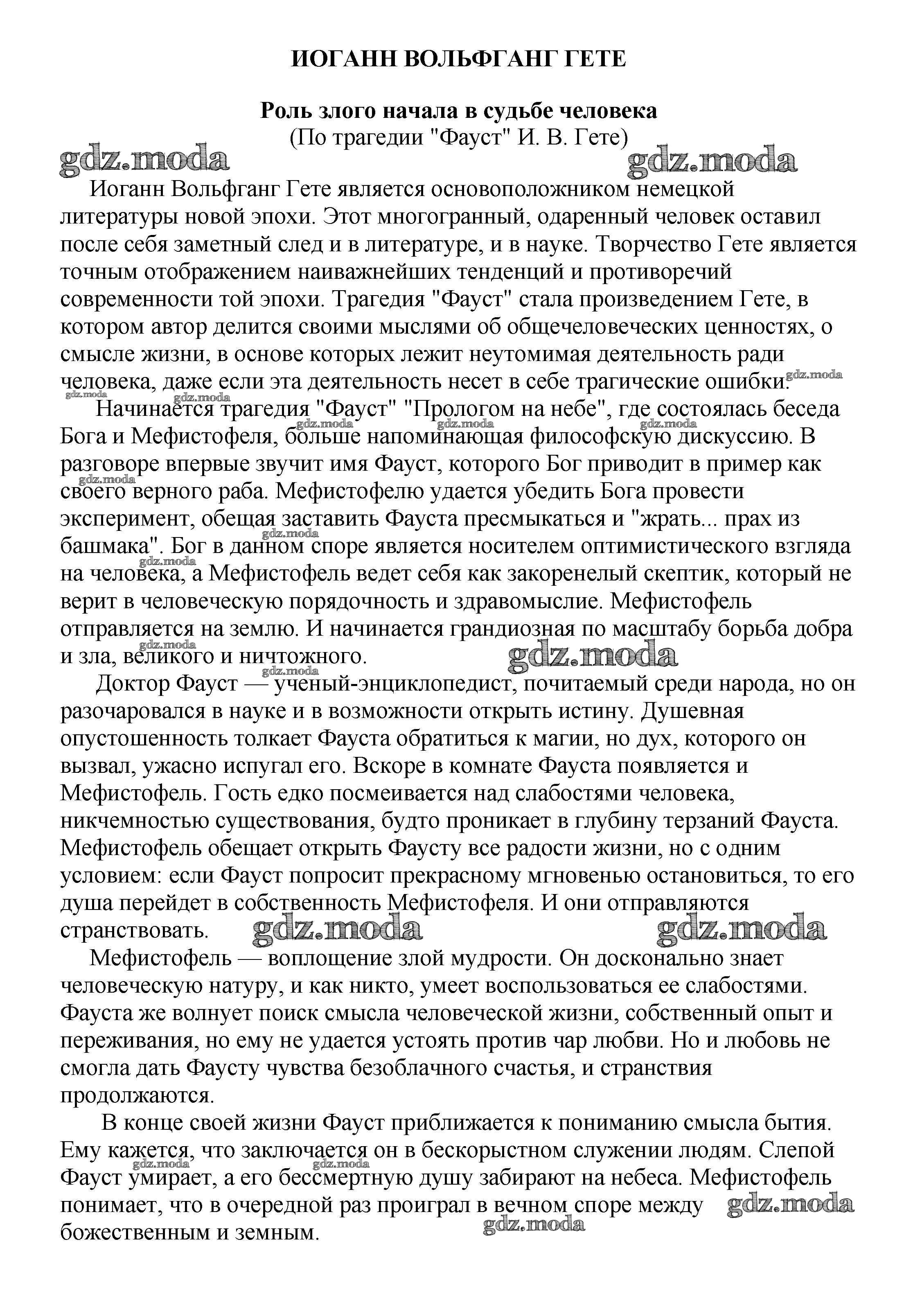 ОТВЕТ на задание № Роль злого начала в судьбе человека (По трагедии "Фауст" И. В. Гете) Сочинения по Литературе 5-10 класс Белик