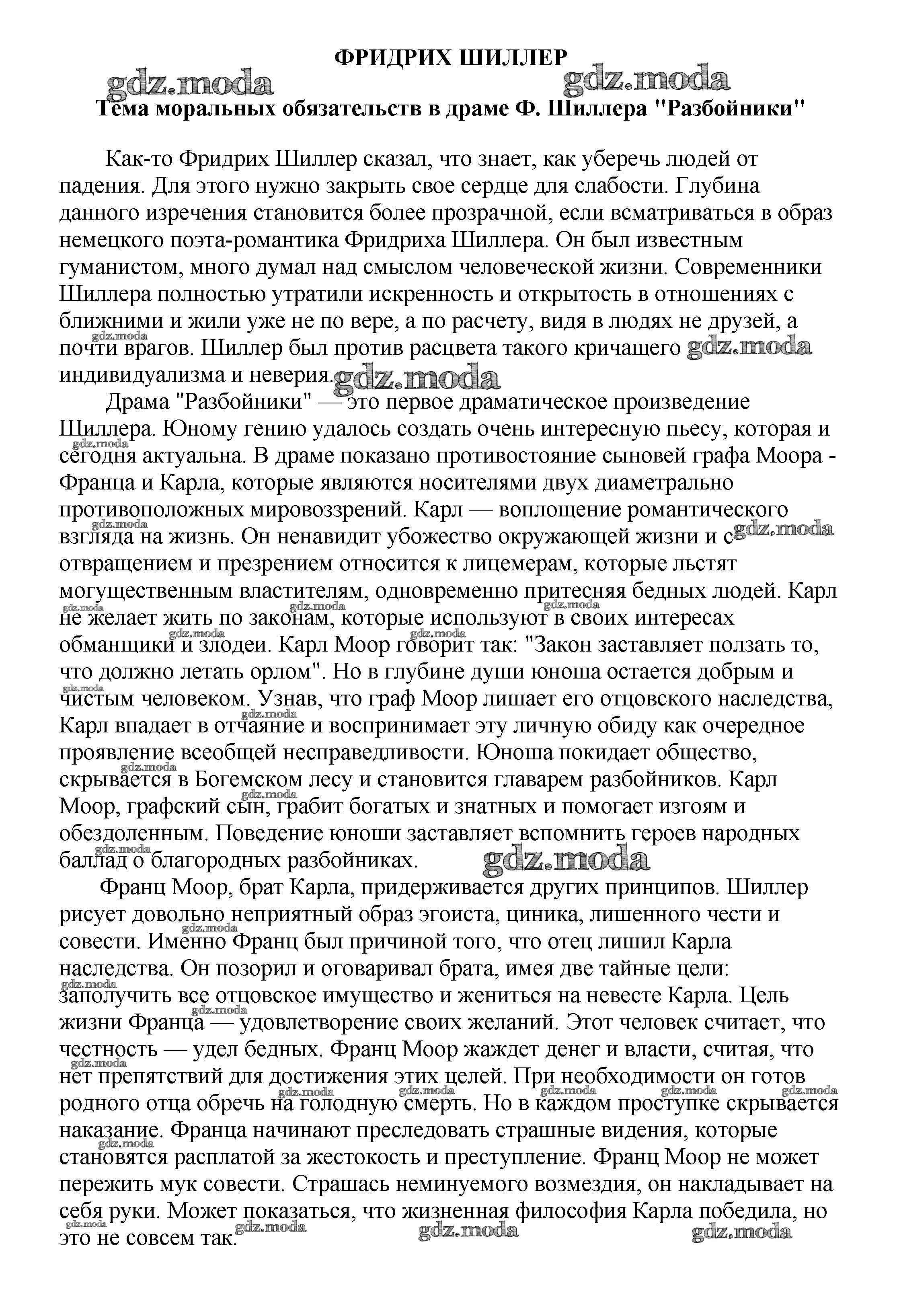 ГДЗ решение к заданию № Тема моральных обязательств в драме Ф. Шиллера "Разбойники" Сочинения по русской литературе, зарубежной литературе 5-10 классы Белик Э. В. Баро-Пресс 2017 бесплатно на гдз.мода!