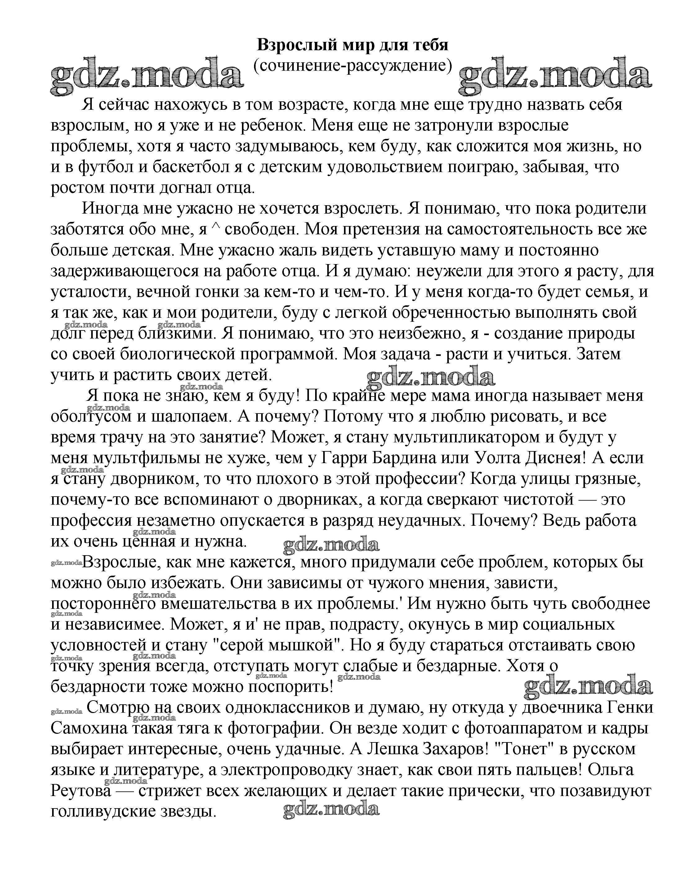 ГДЗ решение к заданию № Взрослый мир для тебя (сочинение-рассуждение) Сочинения по русской литературе, зарубежной литературе 5-10 классы Белик Э. В. Баро-Пресс 2017 бесплатно на гдз.мода!
