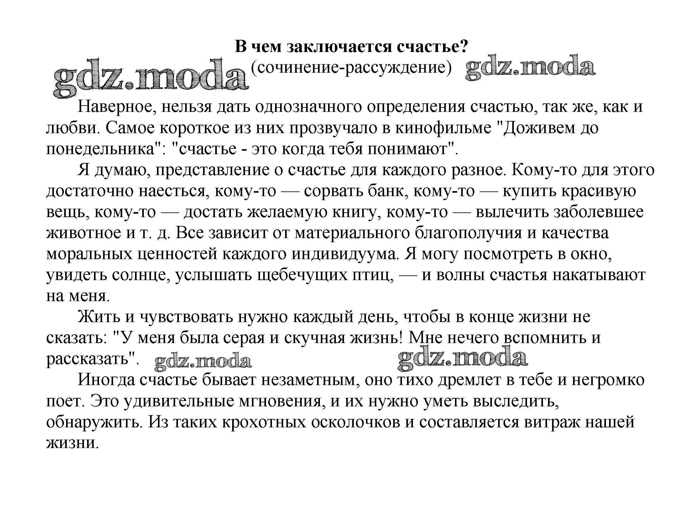 ГДЗ решение к заданию № В чем заключается счастье? (сочинение-рассуждение) Сочинения по русской литературе, зарубежной литературе 5-10 классы Белик Э. В. Баро-Пресс 2017 бесплатно на гдз.мода!
