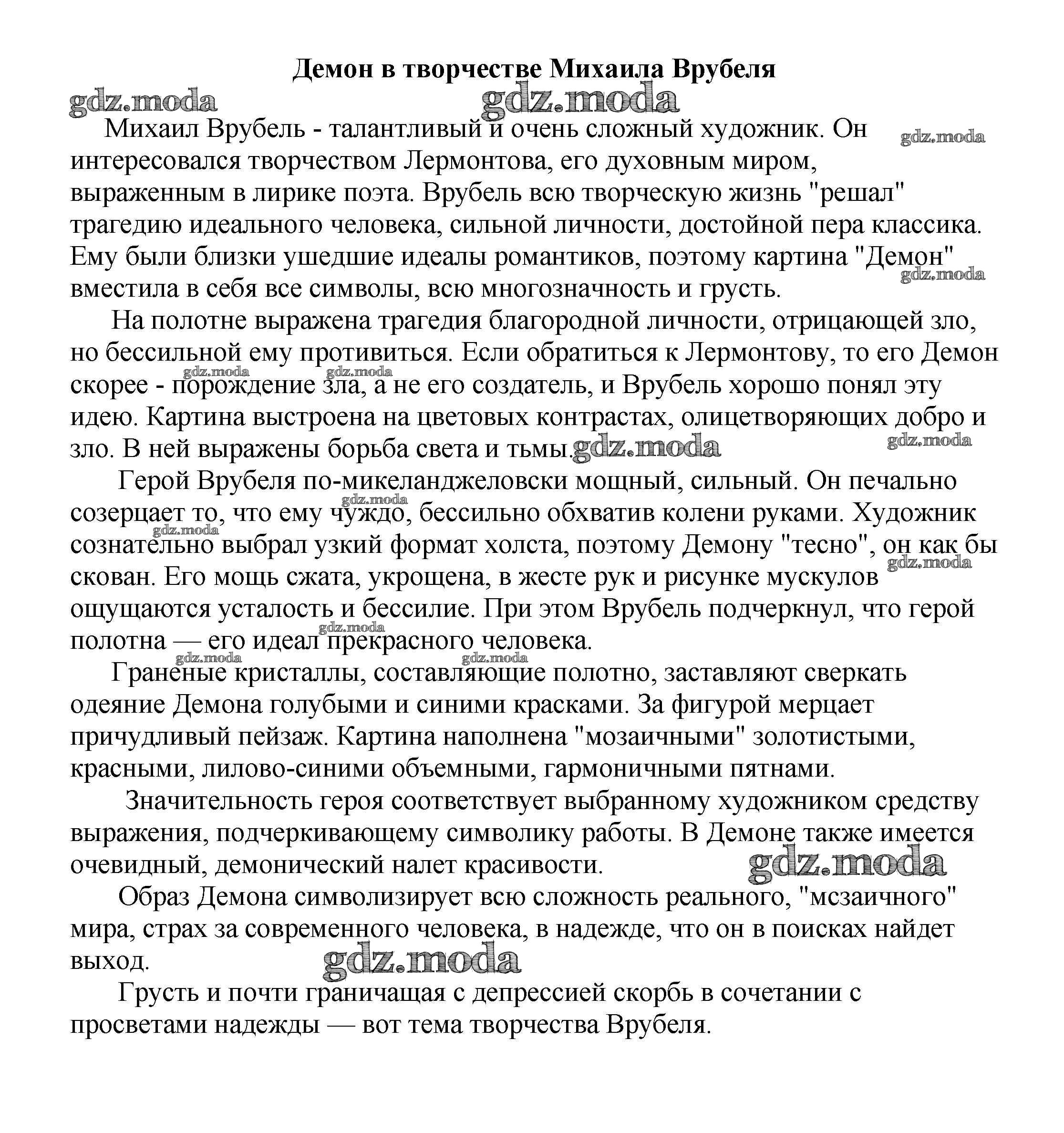 ГДЗ решение к заданию № Демон в творчестве Михаила Врубеля Сочинения по русской литературе, зарубежной литературе 5-10 классы Белик Э. В. Баро-Пресс 2017 бесплатно на гдз.мода!