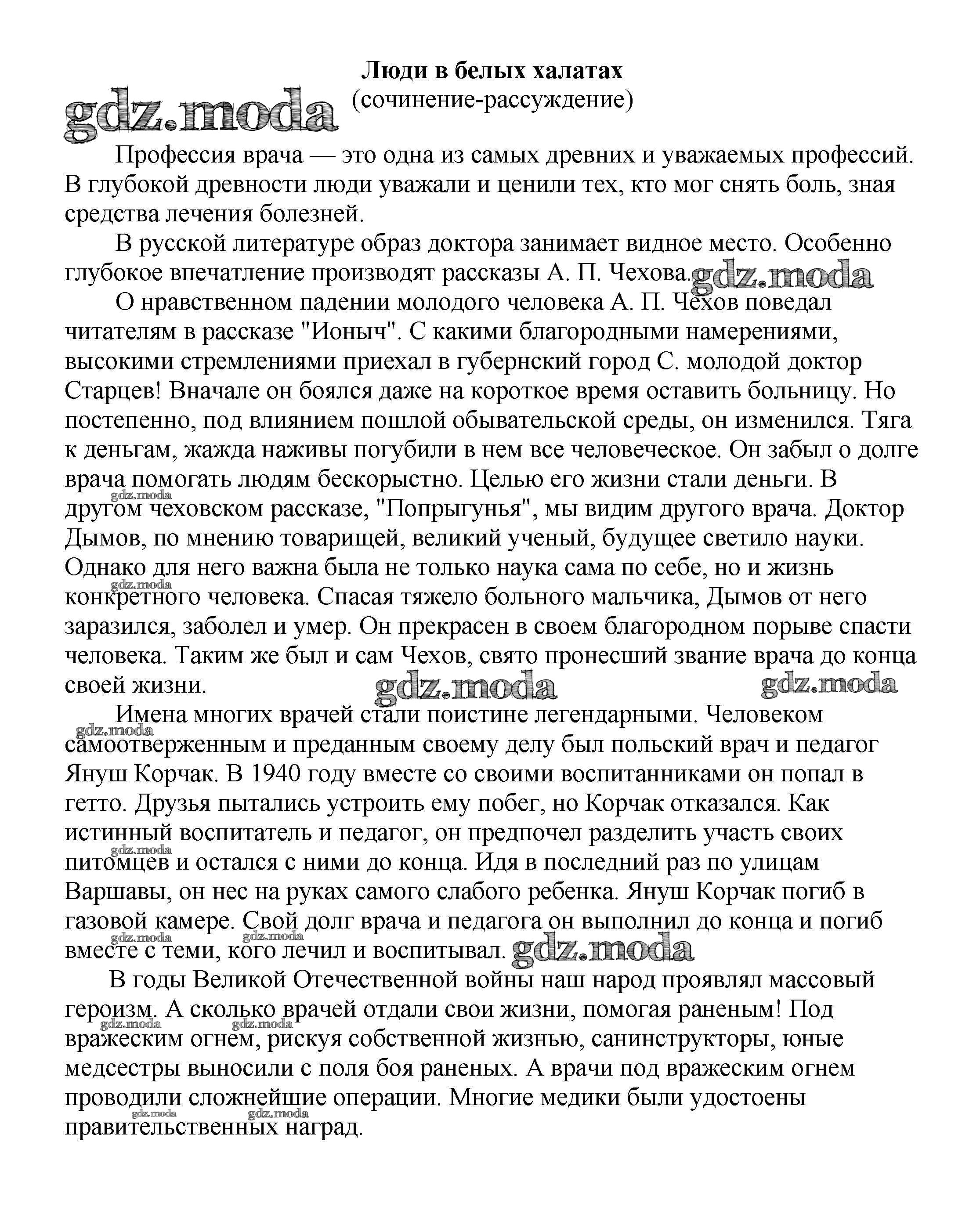 ГДЗ решение к заданию № Люди в белых халатах (сочинение-рассуждение) Сочинения по русской литературе, зарубежной литературе 5-10 классы Белик Э. В. Баро-Пресс 2017 бесплатно на гдз.мода!