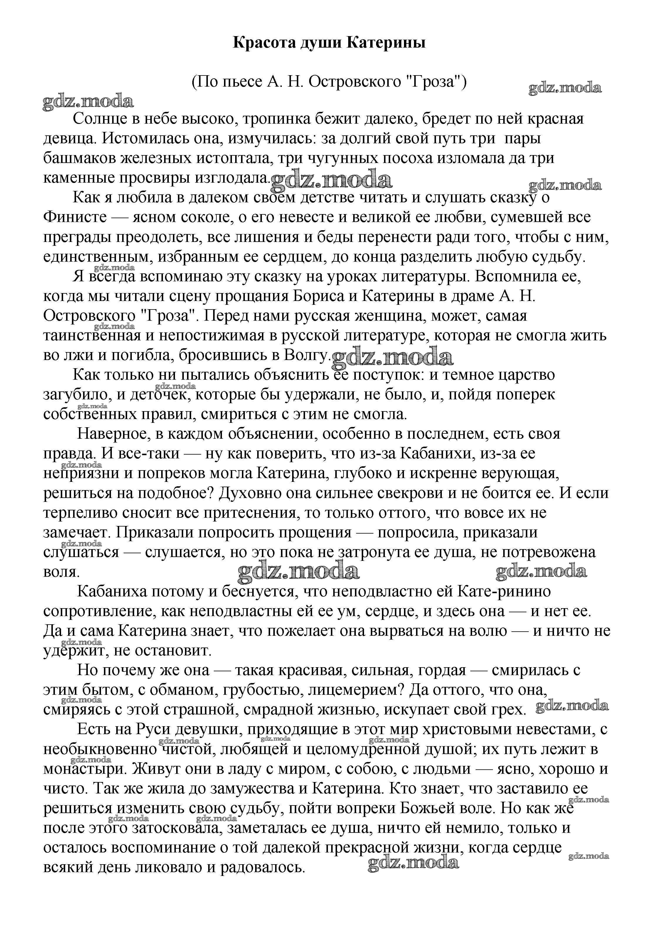 ГДЗ решение к заданию № Красота души Катерины (По пьесе А. Н. Островского "Гроза") Сочинения по русской литературе, зарубежной литературе 5-10 классы Белик Э. В. Баро-Пресс 2017 бесплатно на гдз.мода!
