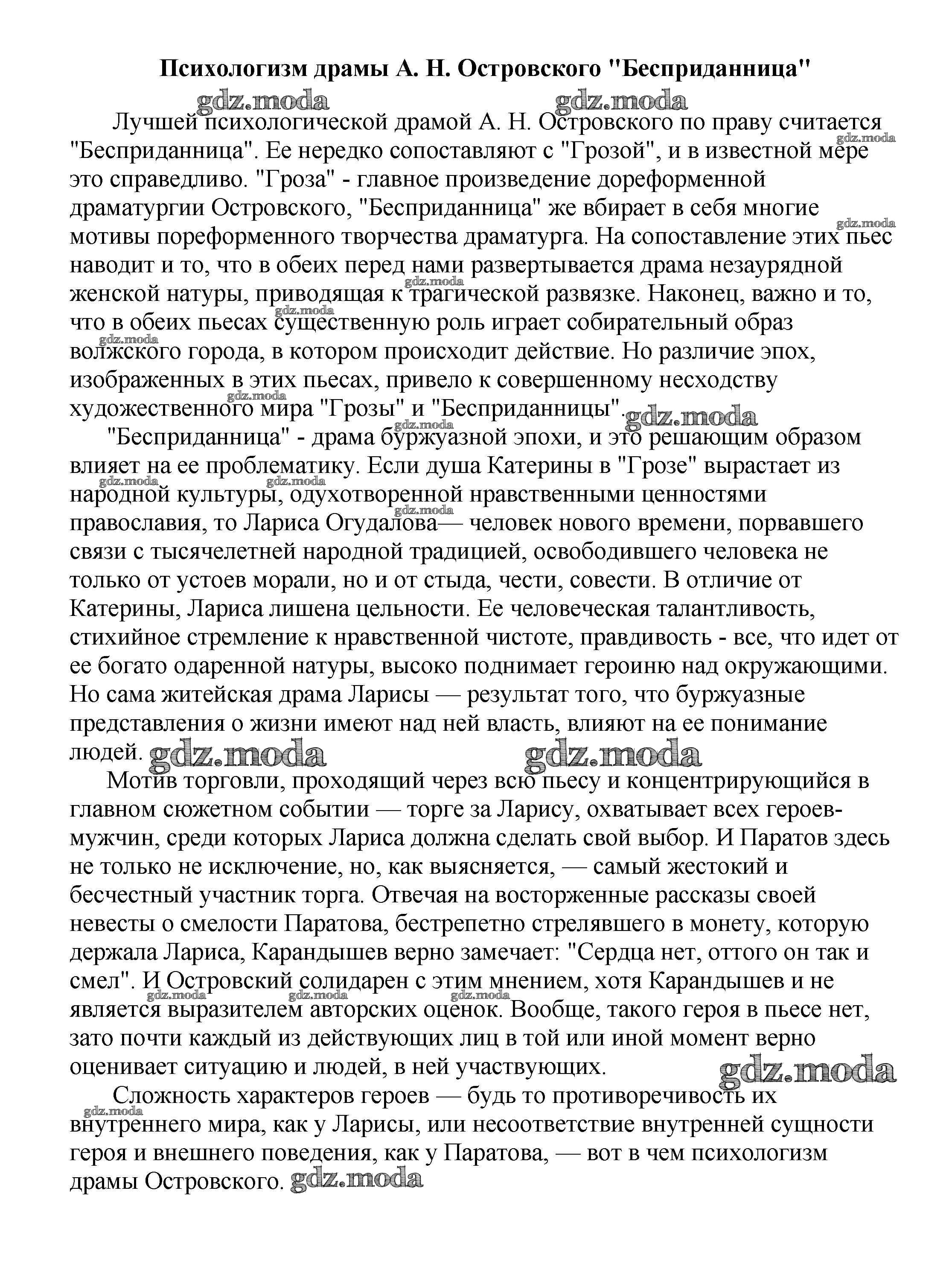 ГДЗ решение к заданию № Психологизм драмы А. Н. Островского "Бесприданница" Сочинения по русской литературе, зарубежной литературе 5-10 классы Белик Э. В. Баро-Пресс 2017 бесплатно на гдз.мода!