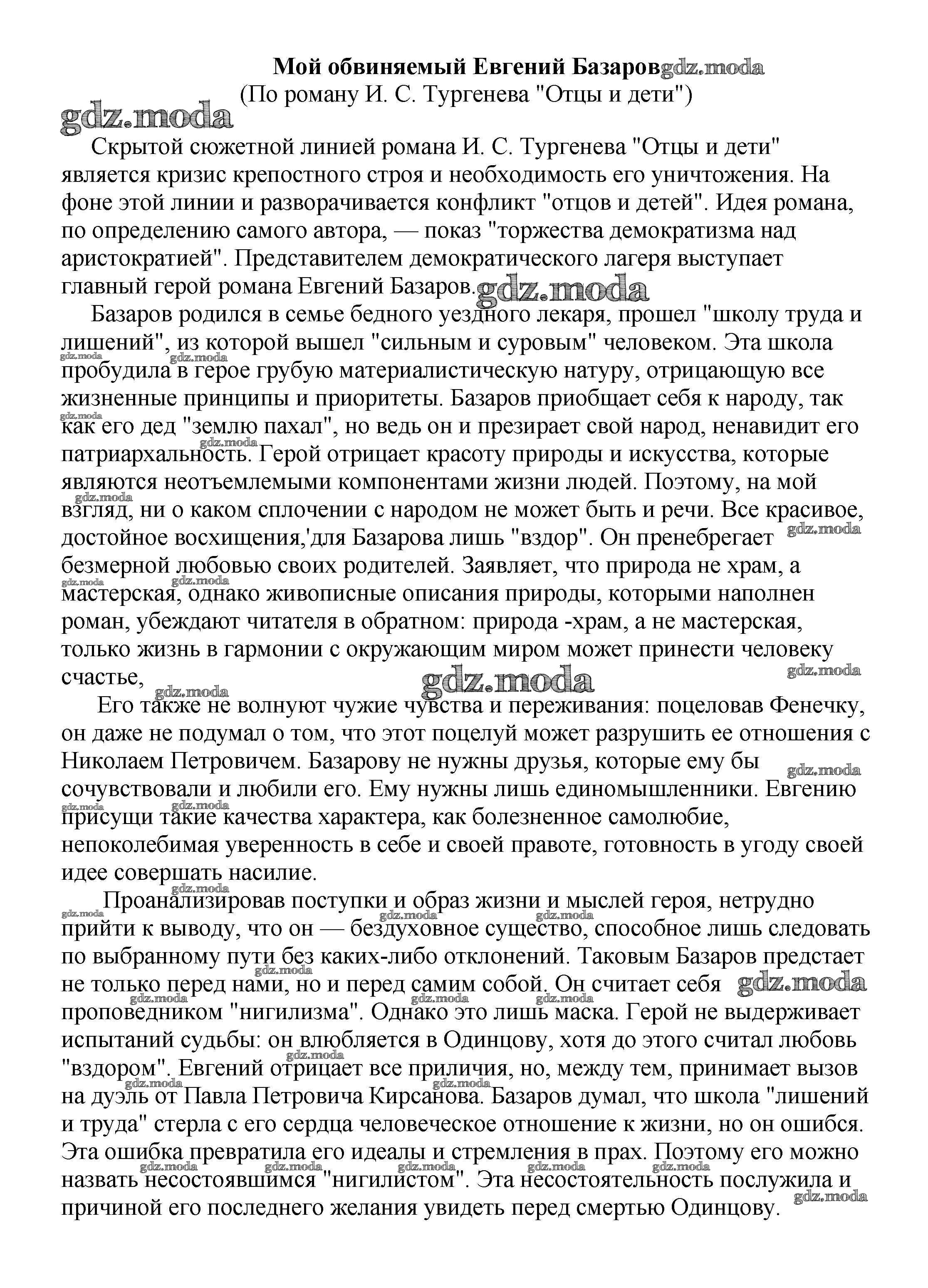 ОТВЕТ на задание № Мой обвиняемый Евгений Базаров (По роману И. С. Тургенева "Отцы и дети") Сочинения по Литературе 5-10 класс Белик