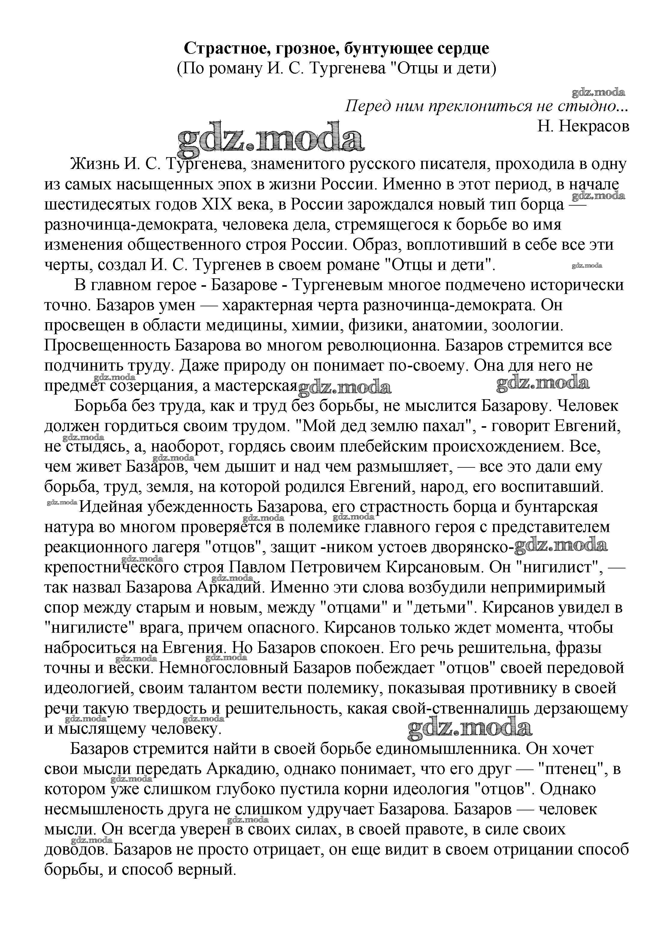 ОТВЕТ на задание № Страстное, грозное, бунтующее сердце (По роману И. С. Тургенева "Отцы и дети) Сочинения по Литературе 5-10 класс Белик