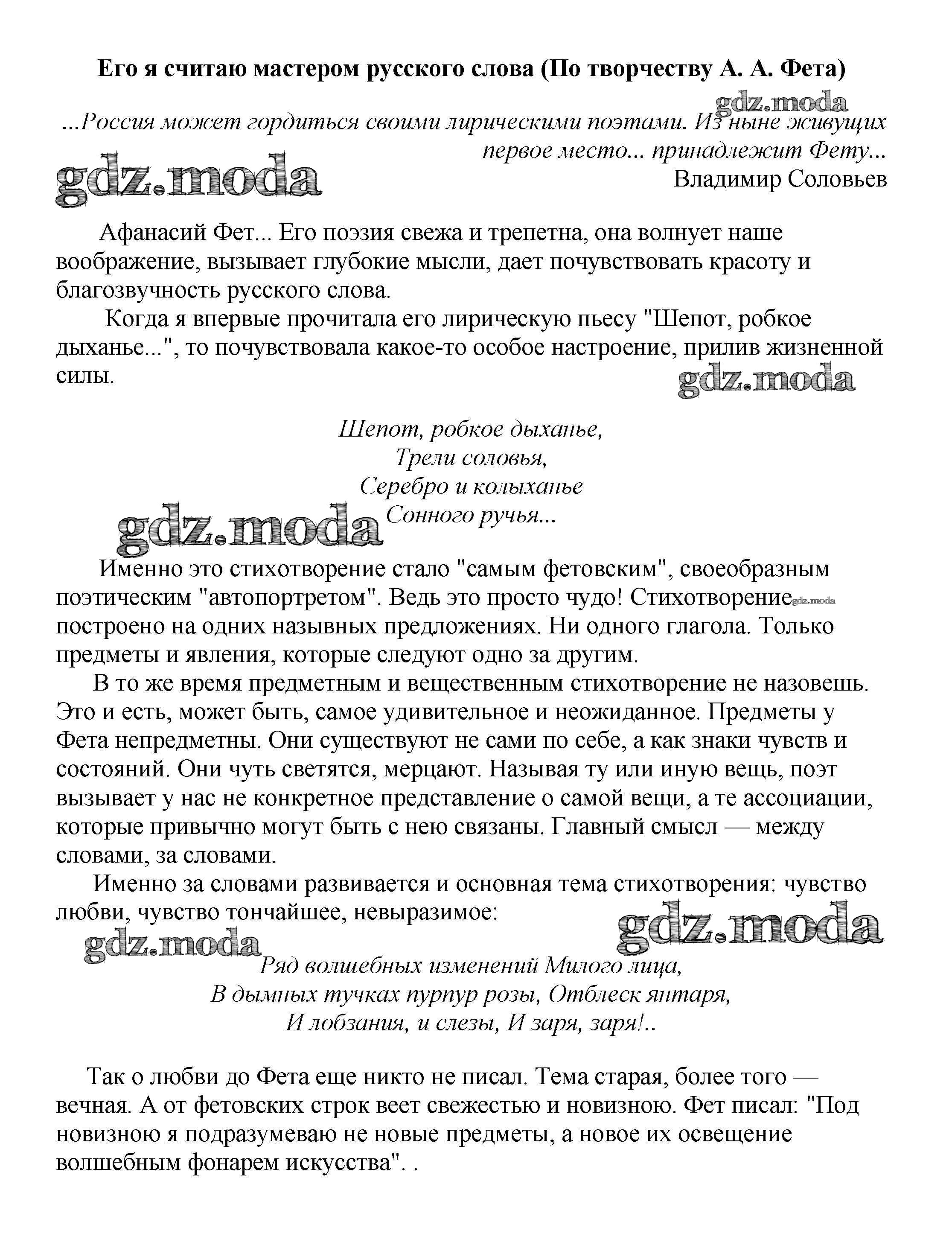 ГДЗ решение к заданию № Его я считаю мастером русского слова (По творчеству А. А. Фета) Сочинения по русской литературе, зарубежной литературе 5-10 классы Белик Э. В. Баро-Пресс 2017 бесплатно на гдз.мода!