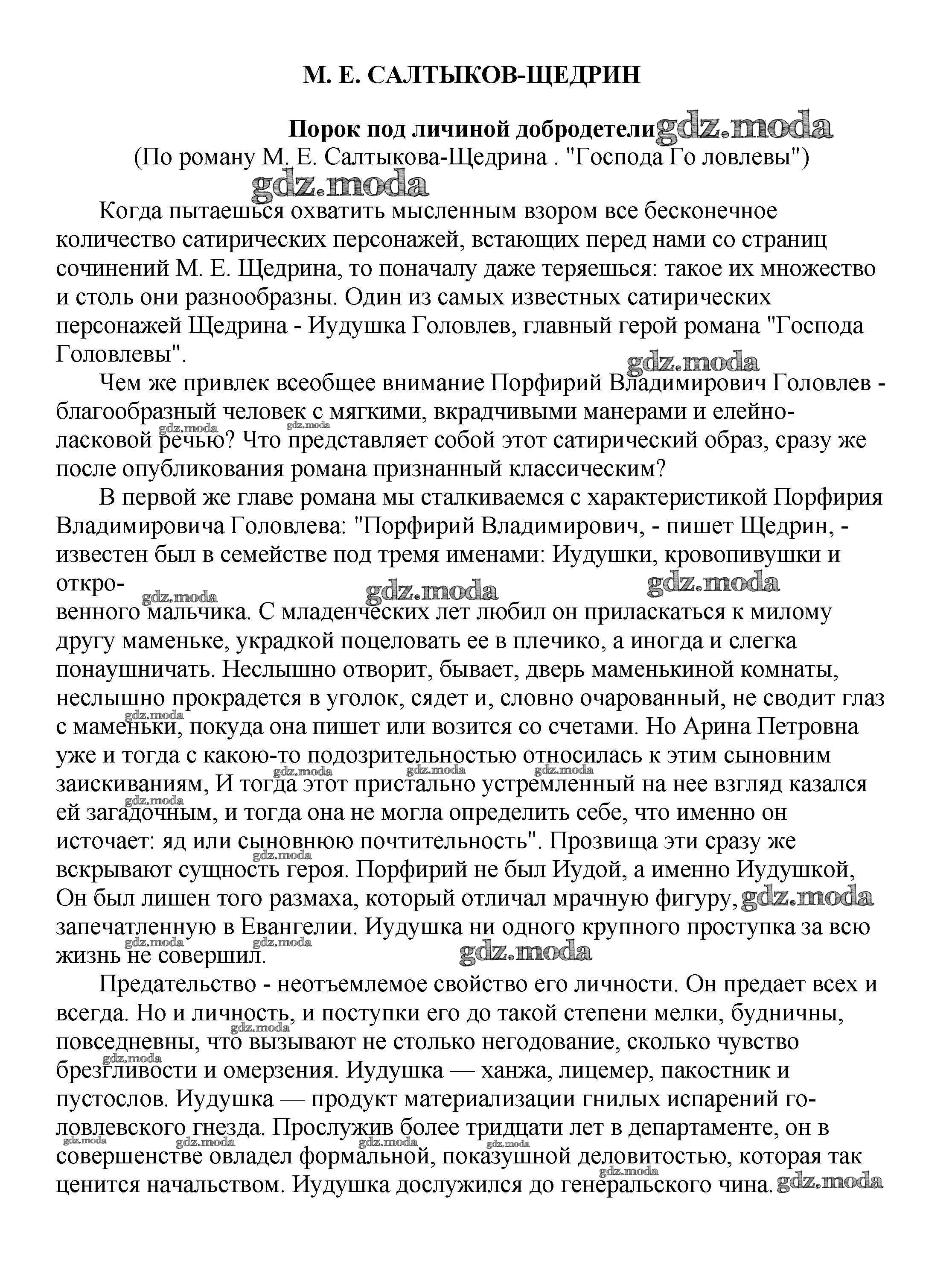 ГДЗ решение к заданию № Порок под личиной добродетели (По роману М. Е. Салтыкова-Щедрина . "Господа Го ловлевы") Сочинения по русской литературе, зарубежной литературе 5-10 классы Белик Э. В. Баро-Пресс 2017 бесплатно на гдз.мода!