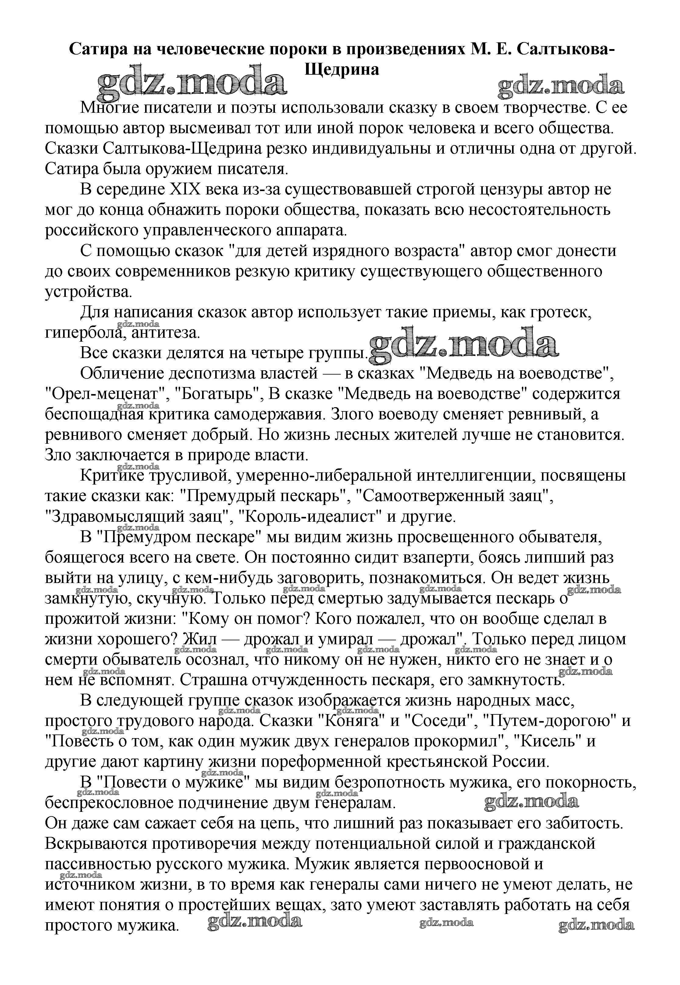 ОТВЕТ на задание № Сатира на человеческие пороки в произведениях М. Е. Салтыкова-Щедрина Сочинения по Литературе 5-10 класс Белик