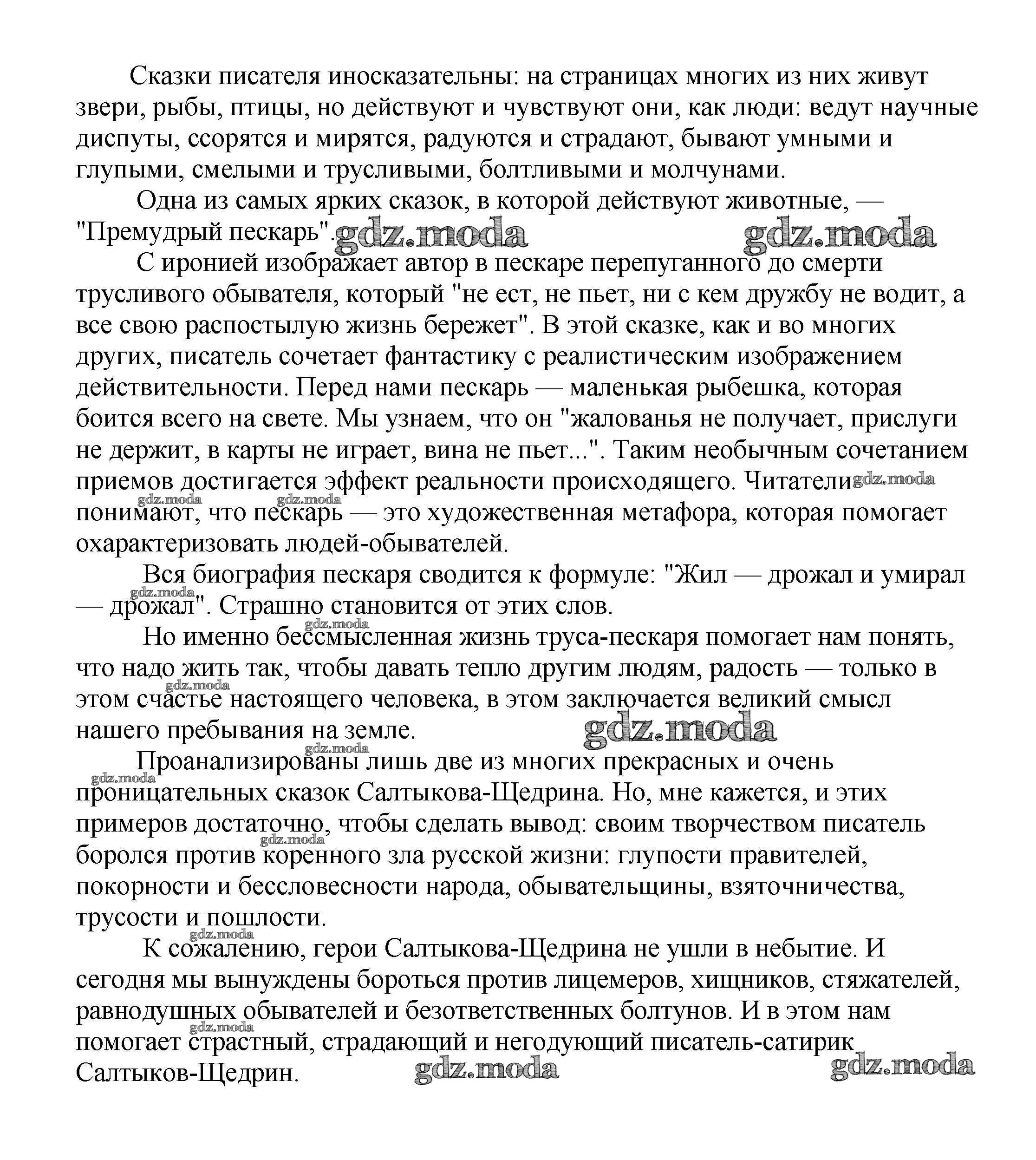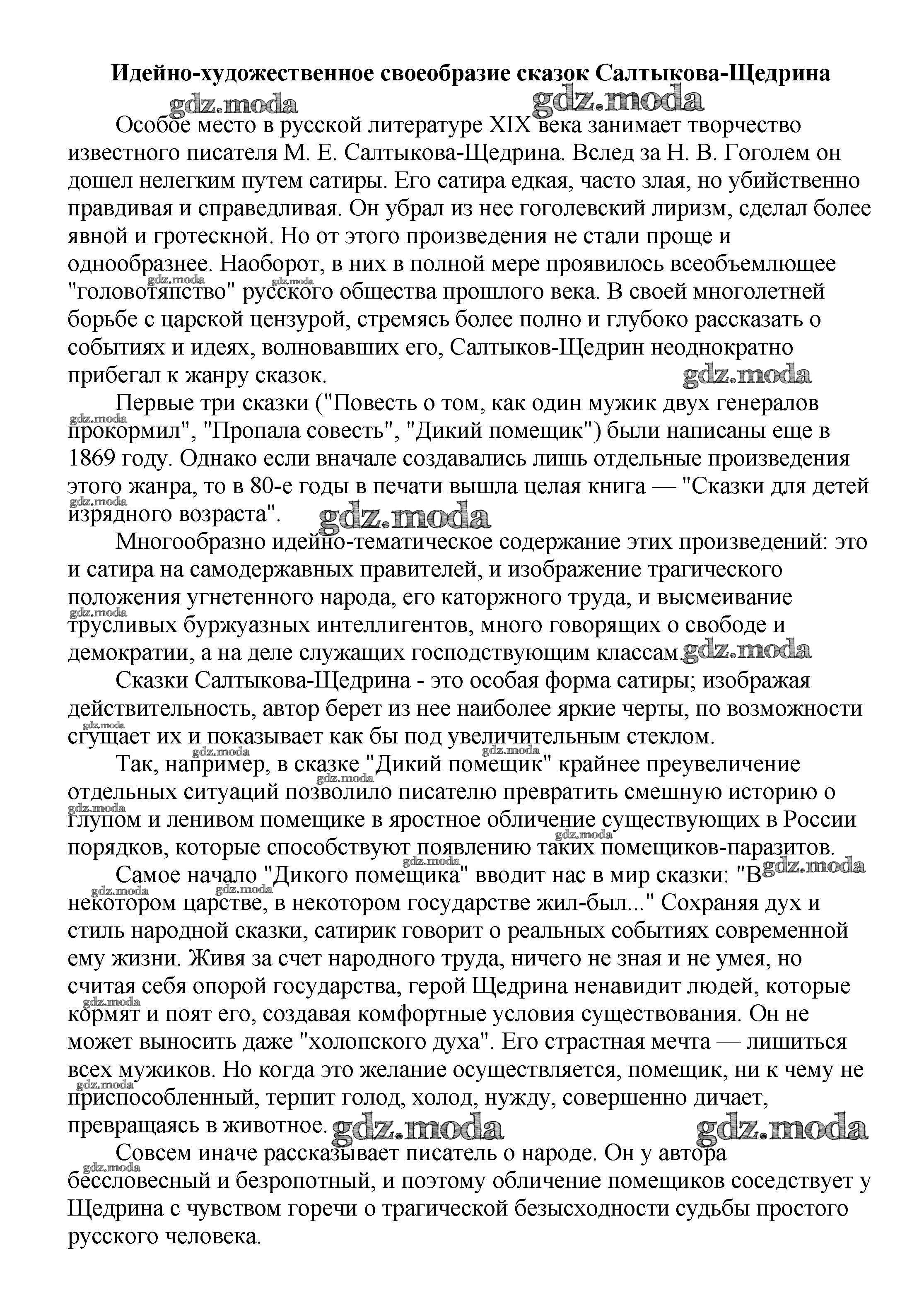 ГДЗ решение к заданию № Идейно-художественное своеобразие сказок Салтыкова-Щедрина Сочинения по русской литературе, зарубежной литературе 5-10 классы Белик Э. В. Баро-Пресс 2017 бесплатно на гдз.мода!