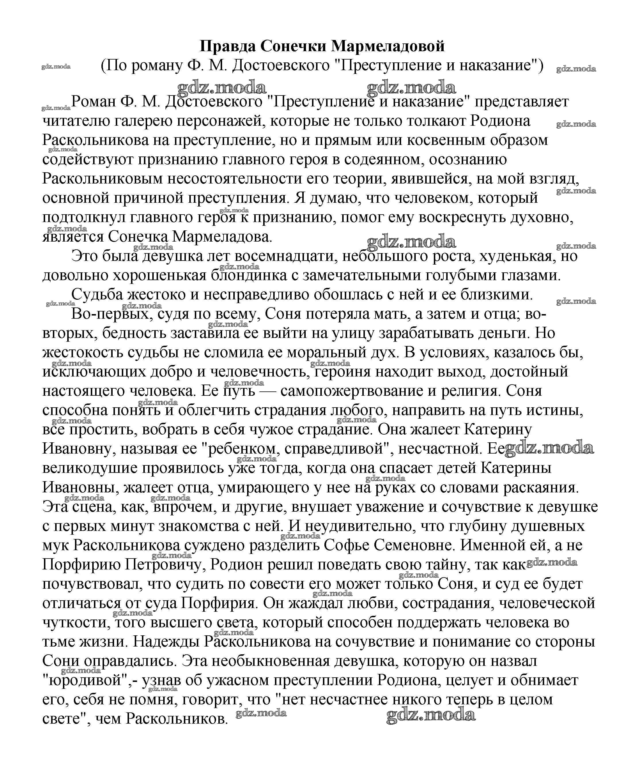 ГДЗ решение к заданию № Правда Сонечки Мармеладовой (По роману Ф. М. Достоевского "Преступление и наказание") Сочинения по русской литературе, зарубежной литературе 5-10 классы Белик Э. В. Баро-Пресс 2017 бесплатно на гдз.мода!