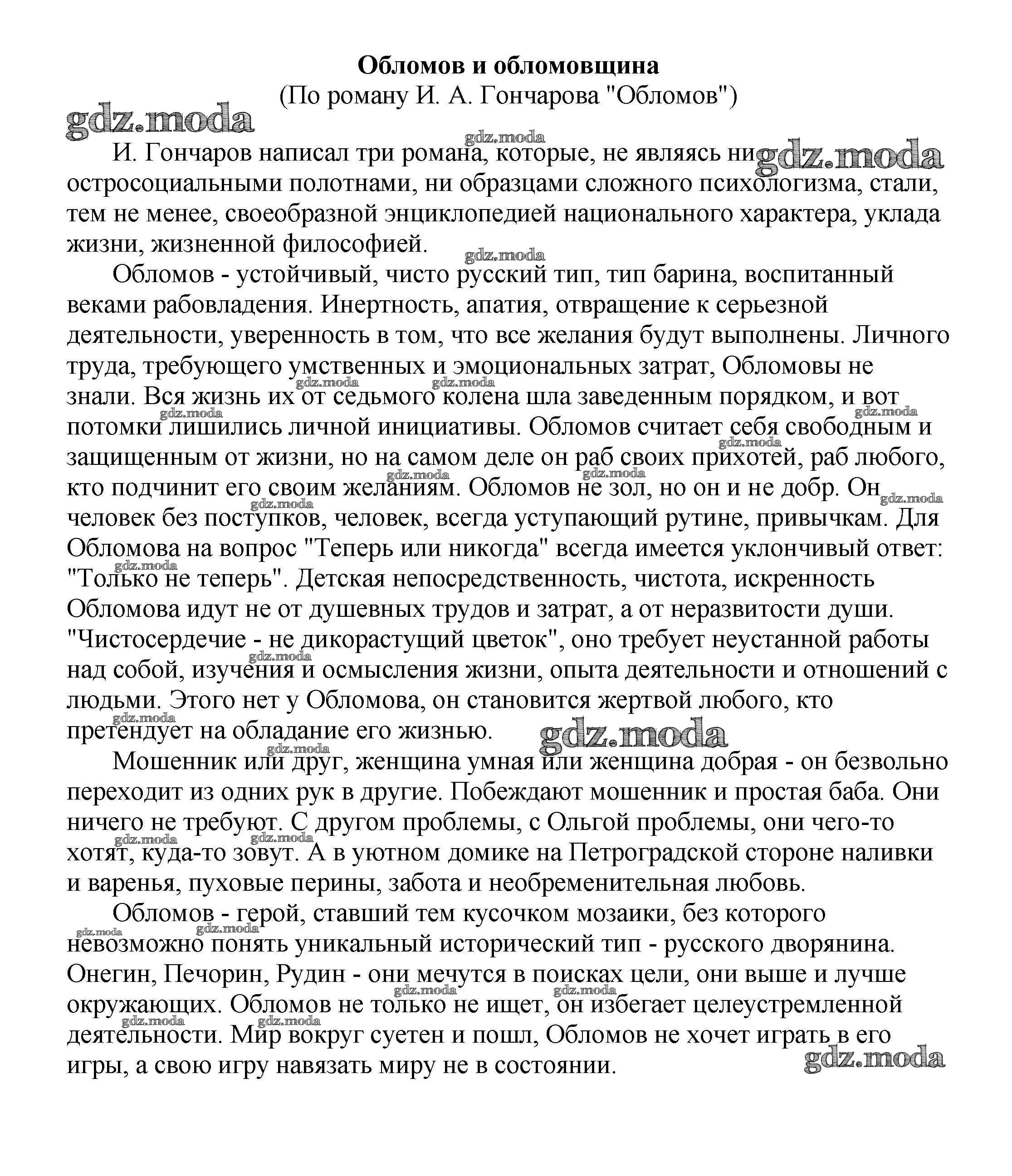 ГДЗ решение к заданию № Обломов и обломовщина (По роману И. А. Гончарова "Обломов") Сочинения по русской литературе, зарубежной литературе 5-10 классы Белик Э. В. Баро-Пресс 2017 бесплатно на гдз.мода!