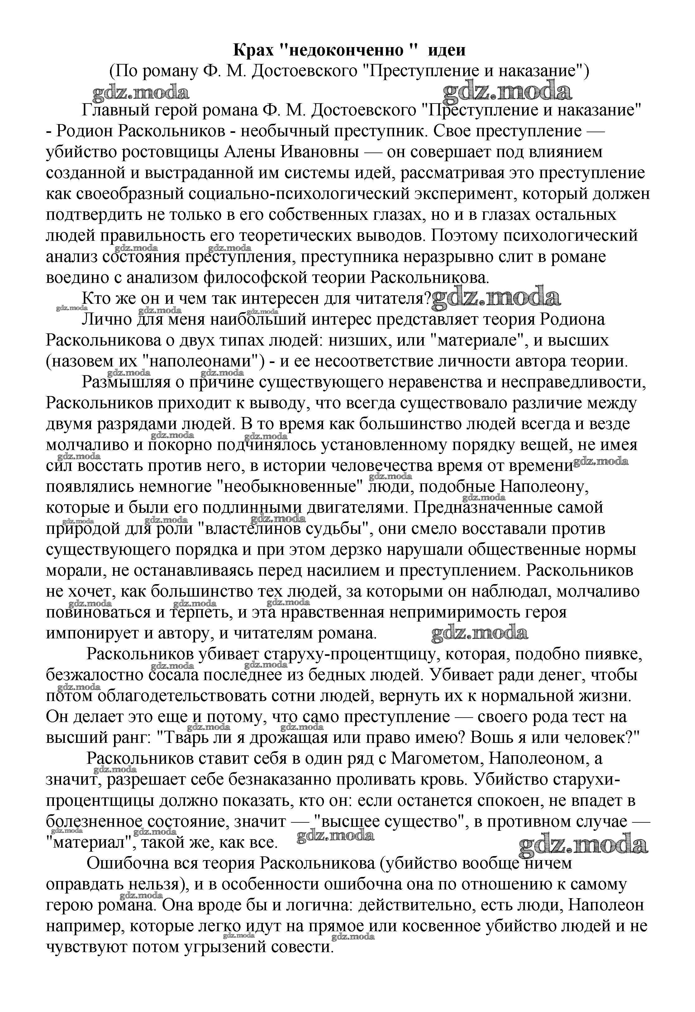 ГДЗ решение к заданию № Крах "недоконченно " идеи (По роману Ф. М. Достоевского "Преступление и наказание") Сочинения по русской литературе, зарубежной литературе 5-10 классы Белик Э. В. Баро-Пресс 2017 бесплатно на гдз.мода!