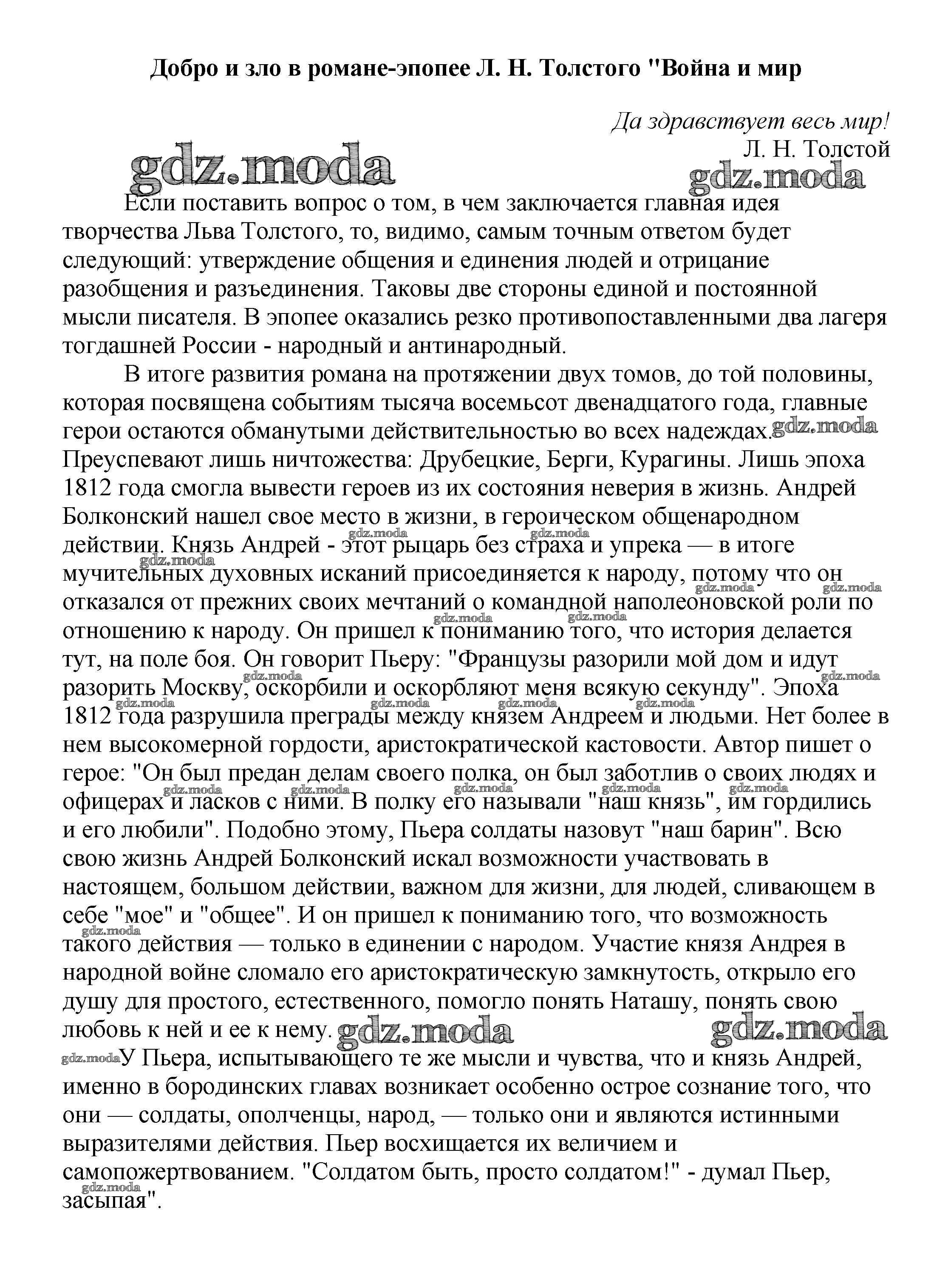 ГДЗ решение к заданию № Добро и зло в романе-эпопее Л. Н. Толстого "Война и мир Сочинения по русской литературе, зарубежной литературе 5-10 классы Белик Э. В. Баро-Пресс 2017 бесплатно на гдз.мода!