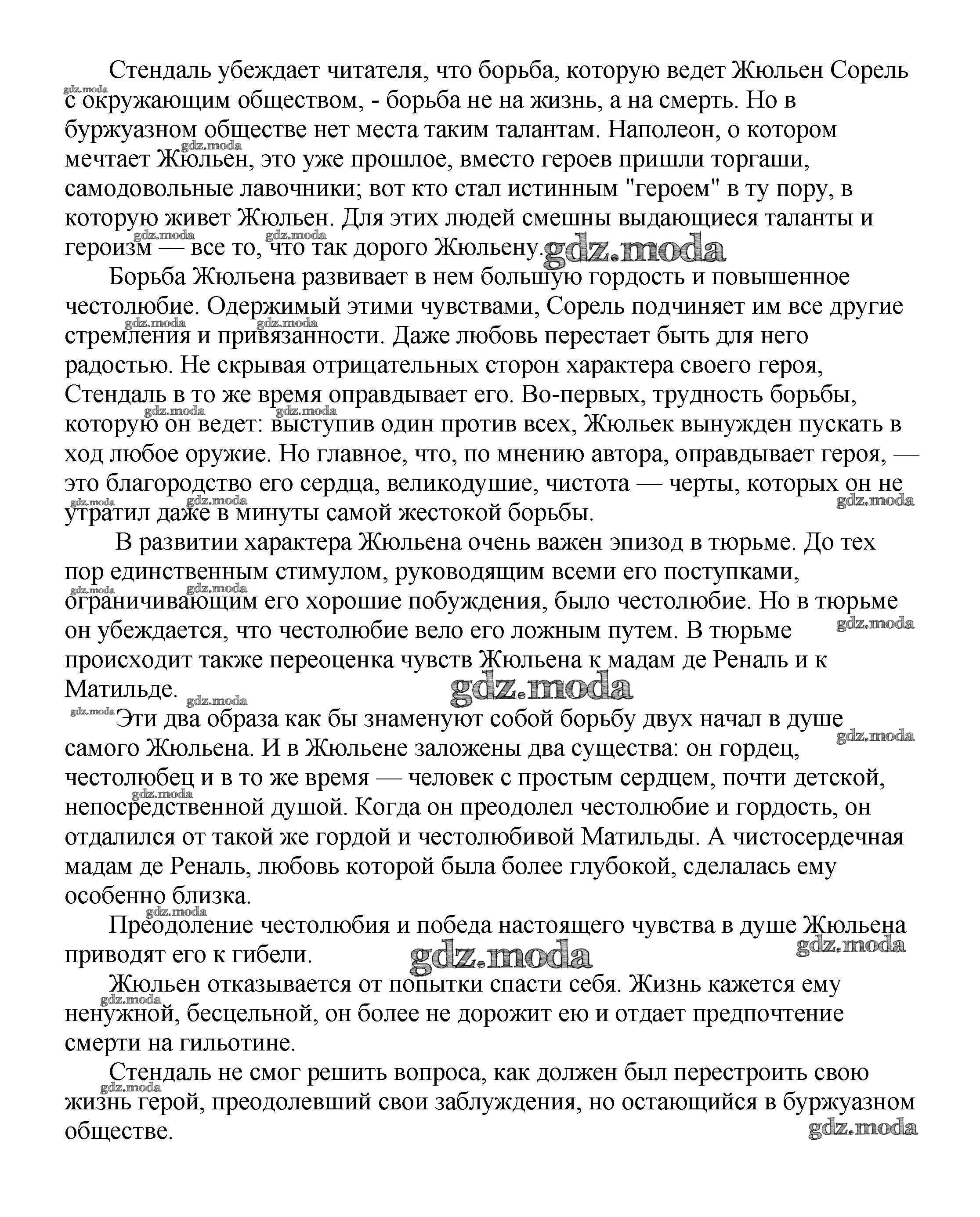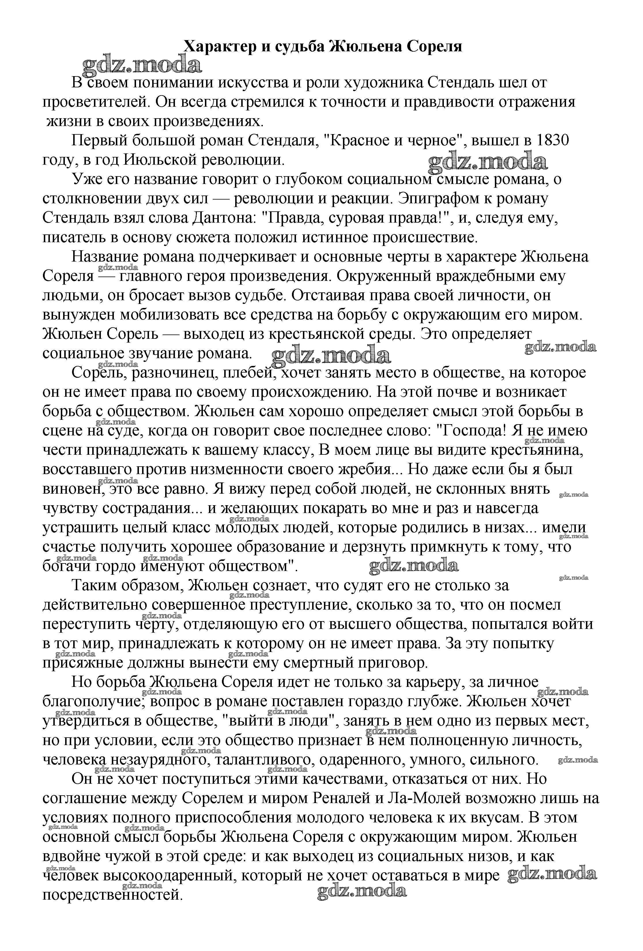 ГДЗ решение к заданию № Характер и судьба Жюльена Сореля Сочинения по русской литературе, зарубежной литературе 5-10 классы Белик Э. В. Баро-Пресс 2017 бесплатно на гдз.мода!