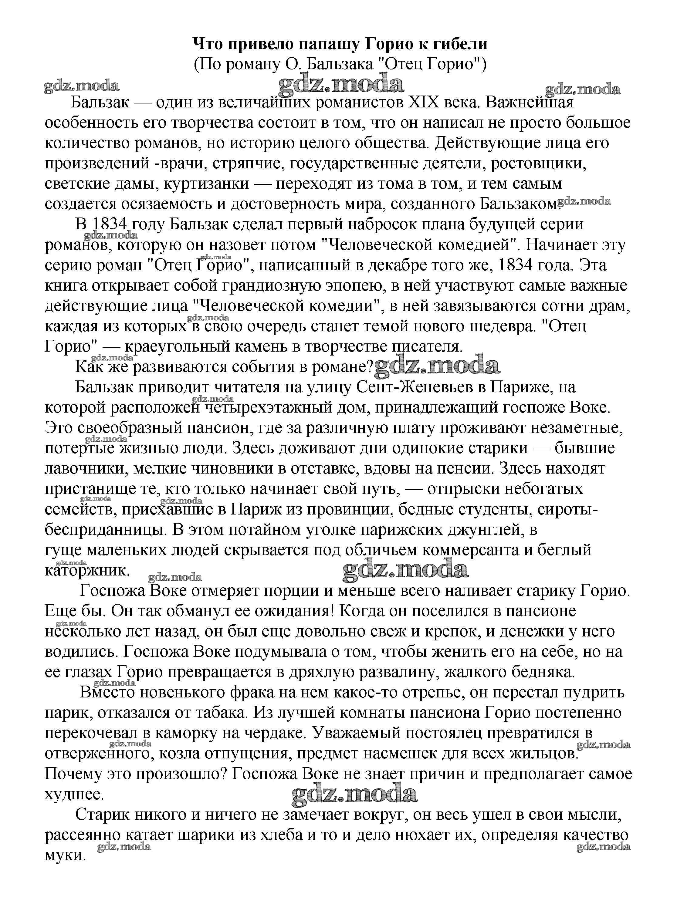 ОТВЕТ на задание № Что привело папашу Горио к гибели (По роману О. Бальзака "Отец Горио") Сочинения по Литературе 5-10 класс Белик