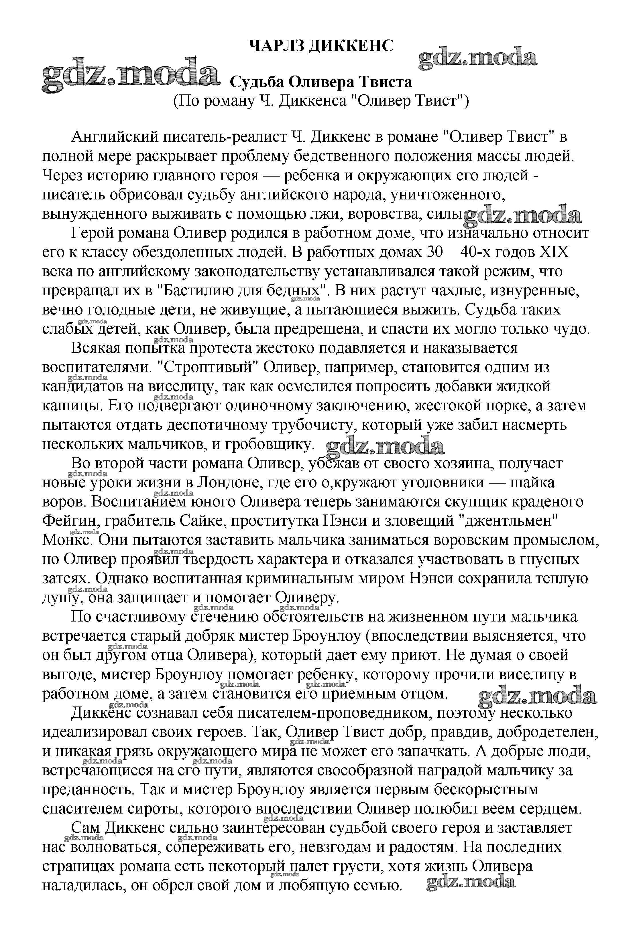 ГДЗ решение к заданию № Судьба Оливера Твиста (По роману Ч. Диккенса "Оливер Твист") Сочинения по русской литературе, зарубежной литературе 5-10 классы Белик Э. В. Баро-Пресс 2017 бесплатно на гдз.мода!