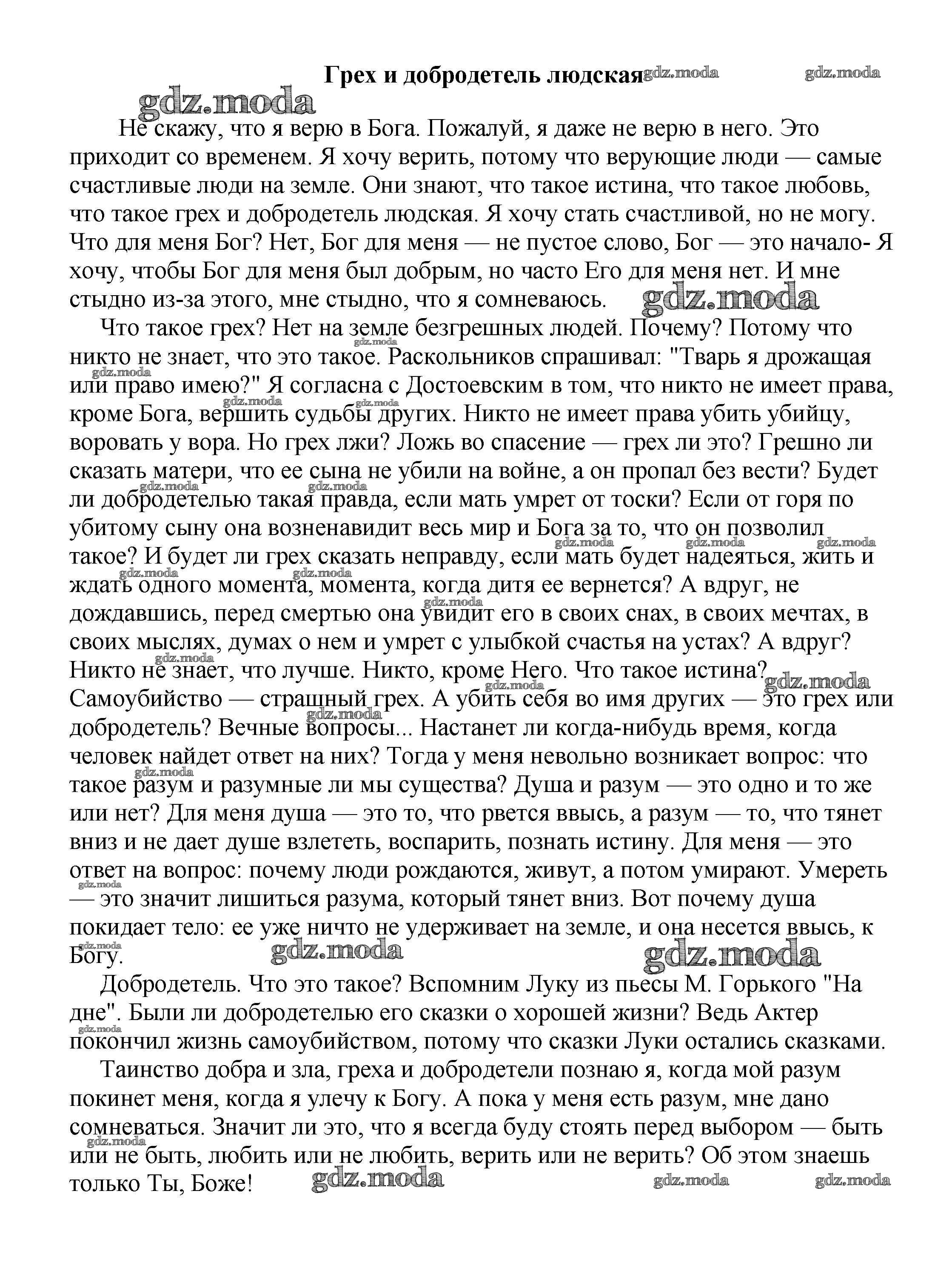 ГДЗ решение к заданию № Грех и добродетель людская Сочинения по русской литературе, зарубежной литературе 5-10 классы Белик Э. В. Баро-Пресс 2017 бесплатно на гдз.мода!