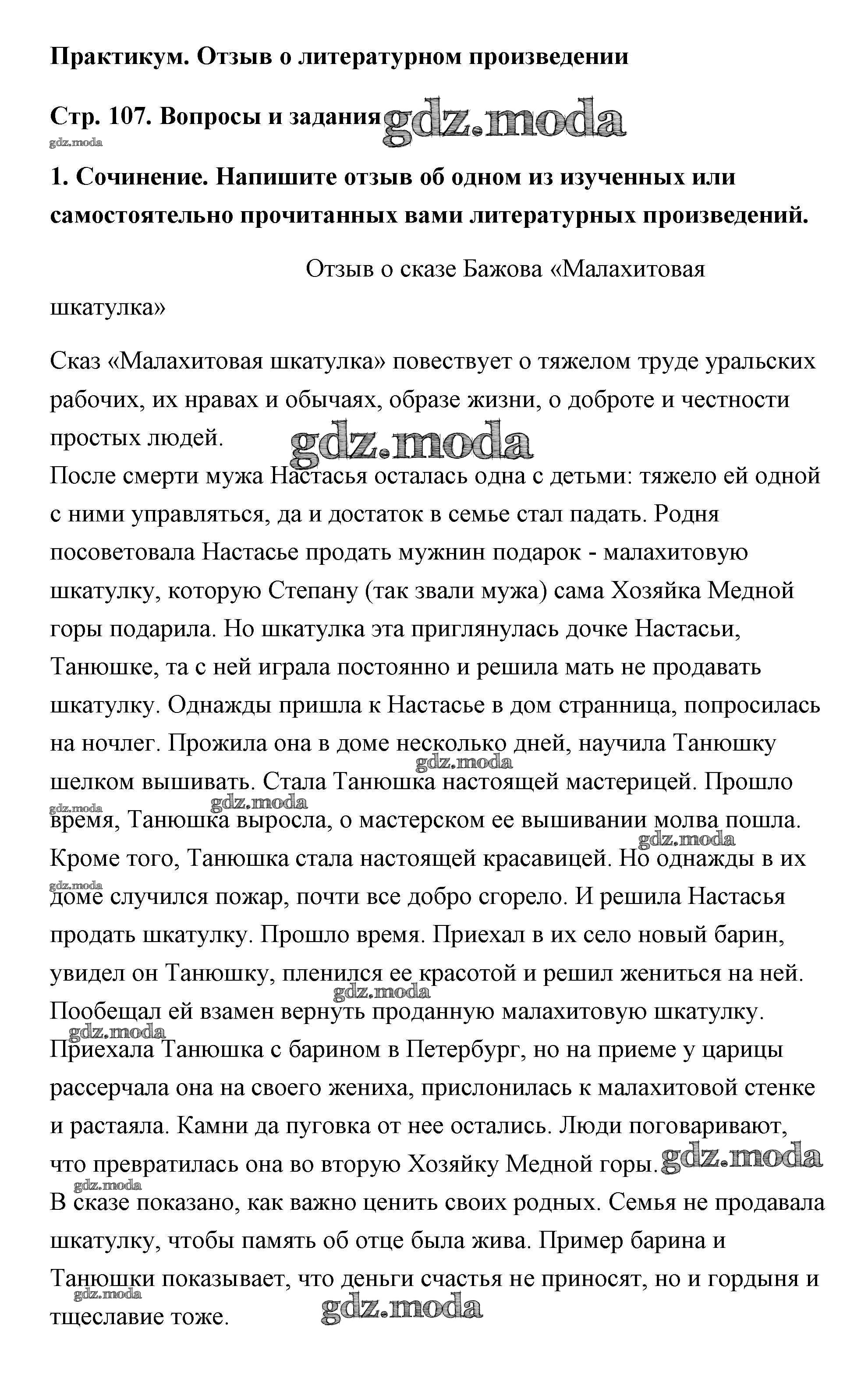 ОТВЕТ на задание № страница 107 Учебник по Литературе 5 класс Чертов
