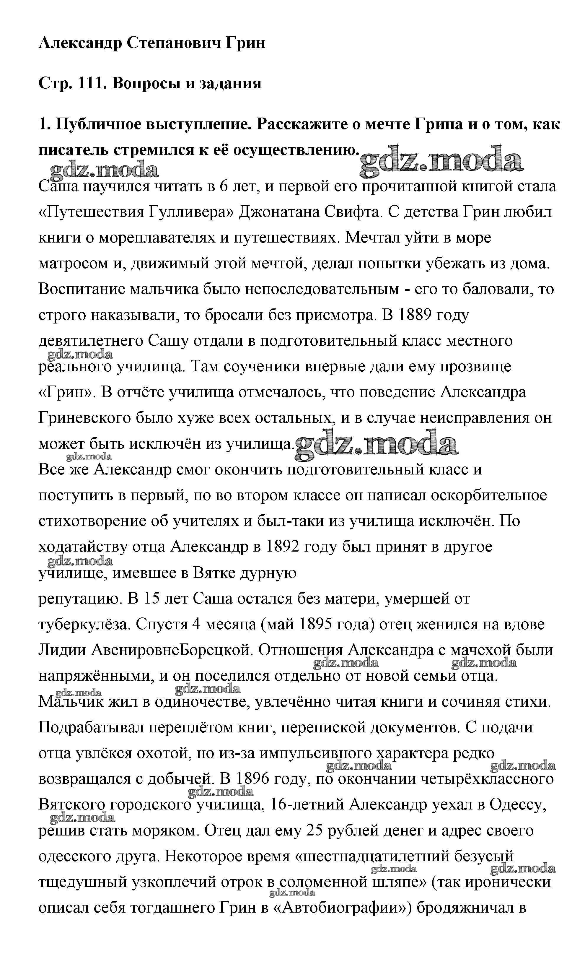 ОТВЕТ на задание № страница 111 Учебник по Литературе 5 класс Чертов