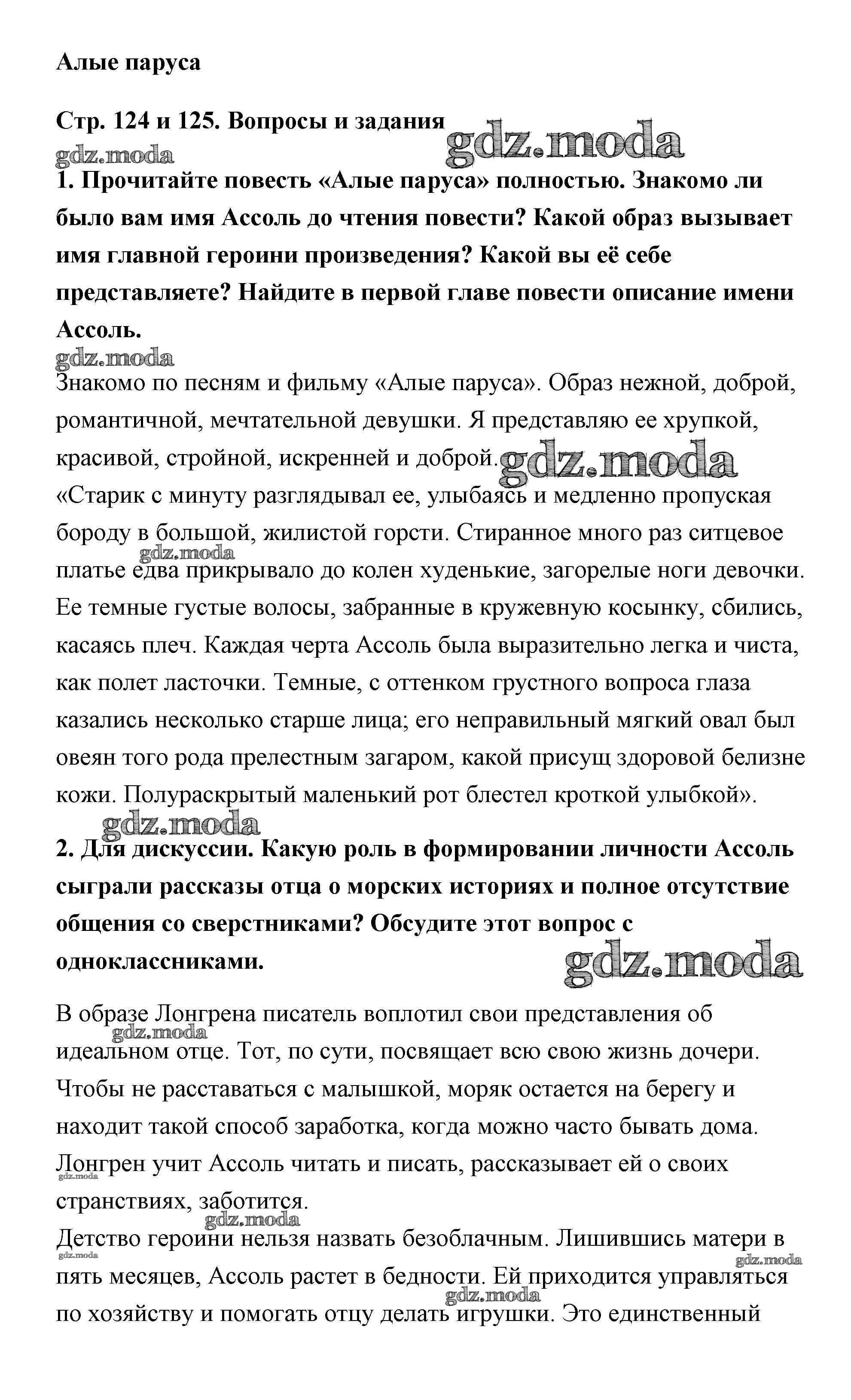 ОТВЕТ на задание № страница 124-125 Учебник по Литературе 5 класс Чертов