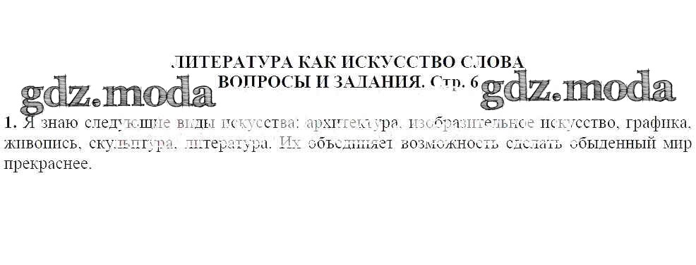 ГДЗ решение к заданию № 6 Литература 5 класс Чертов Просвещение 2018 Часть 1, Часть 2 ФГОС бесплатно на гдз.мода!