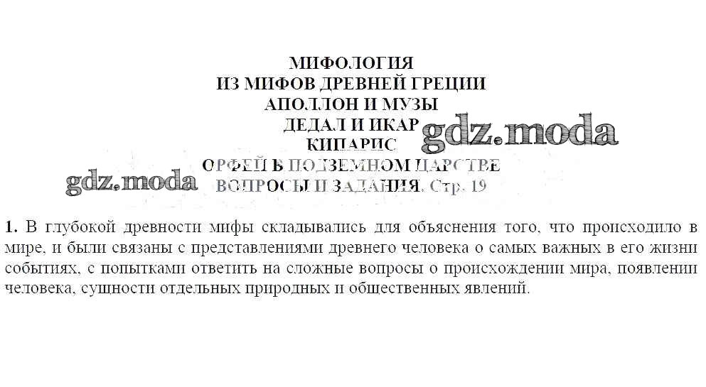ГДЗ решение к заданию № 19 Литература 5 класс Чертов Просвещение 2018 Часть 1, Часть 2 ФГОС бесплатно на гдз.мода!