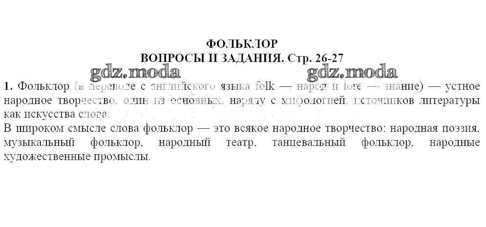 ГДЗ решение к заданию № 26 Литература 5 класс Чертов Просвещение 2018 Часть 1, Часть 2 ФГОС бесплатно на гдз.мода!