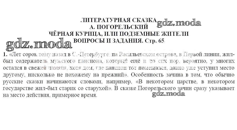 ОТВЕТ на задание № 65 Учебник по Литературе 5 класс Чертов