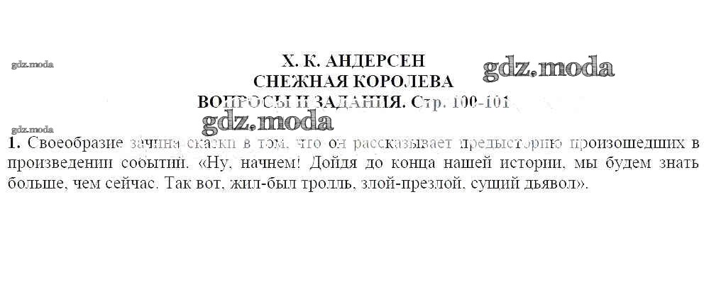 ОТВЕТ на задание № 100 Учебник по Литературе 5 класс Чертов