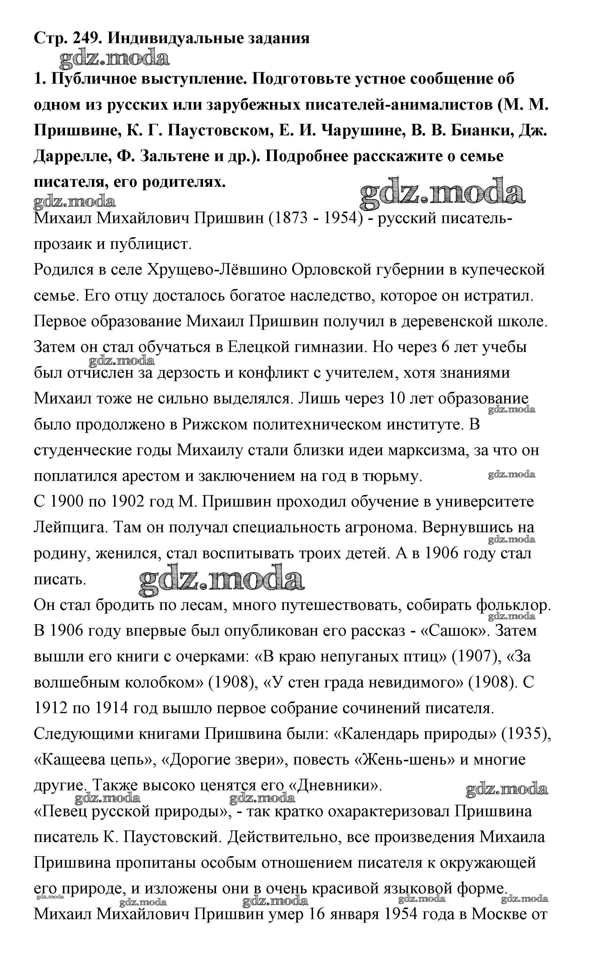 ОТВЕТ на задание № страница 249 Учебник по Литературе 5 класс Чертов