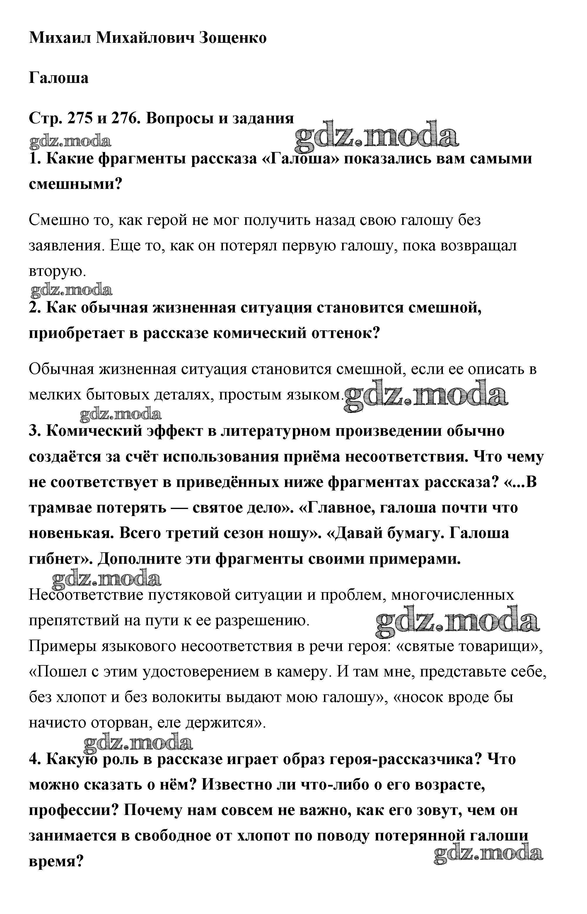 ОТВЕТ на задание № страница 275-276 Учебник по Литературе 5 класс Чертов