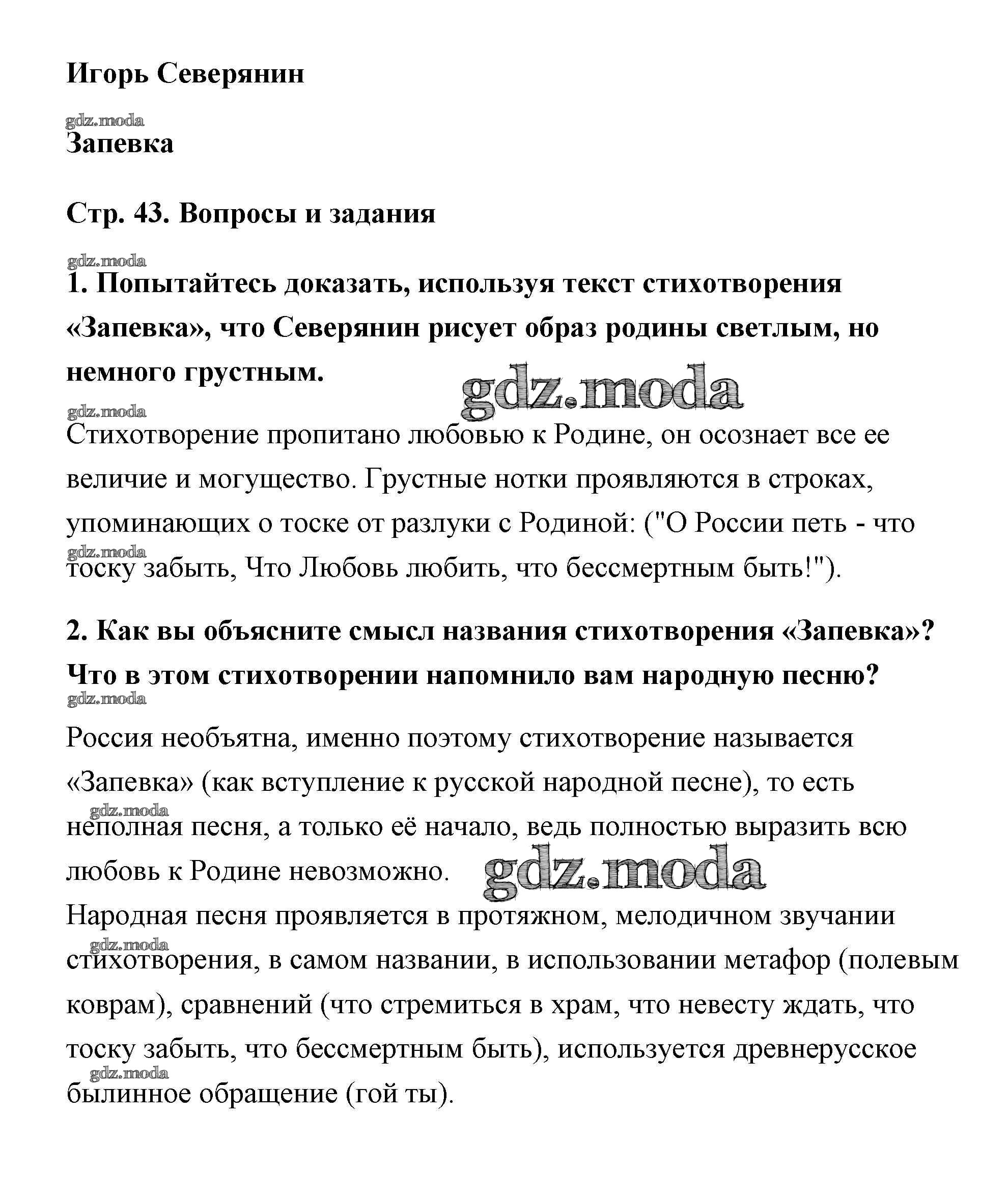ОТВЕТ на задание № страница 43 Учебник по Литературе 5 класс Чертов