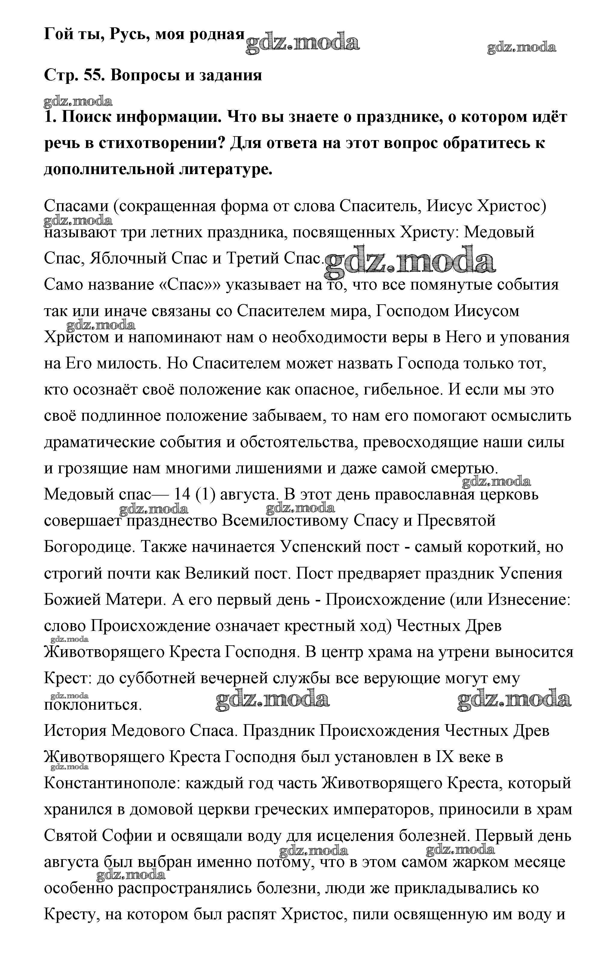 ОТВЕТ на задание № страница 55 Учебник по Литературе 5 класс Чертов