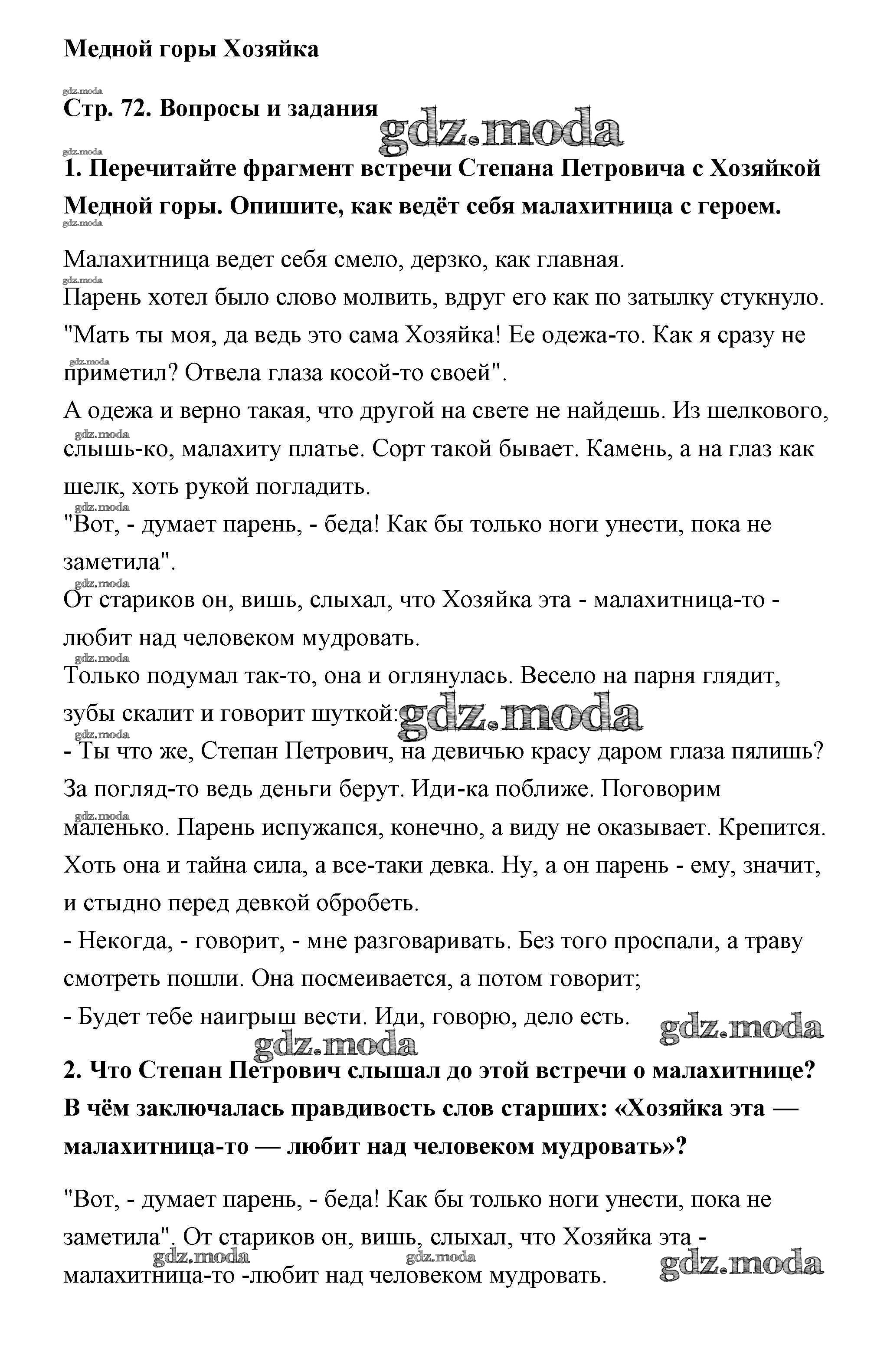 ОТВЕТ на задание № страница 72 Учебник по Литературе 5 класс Чертов