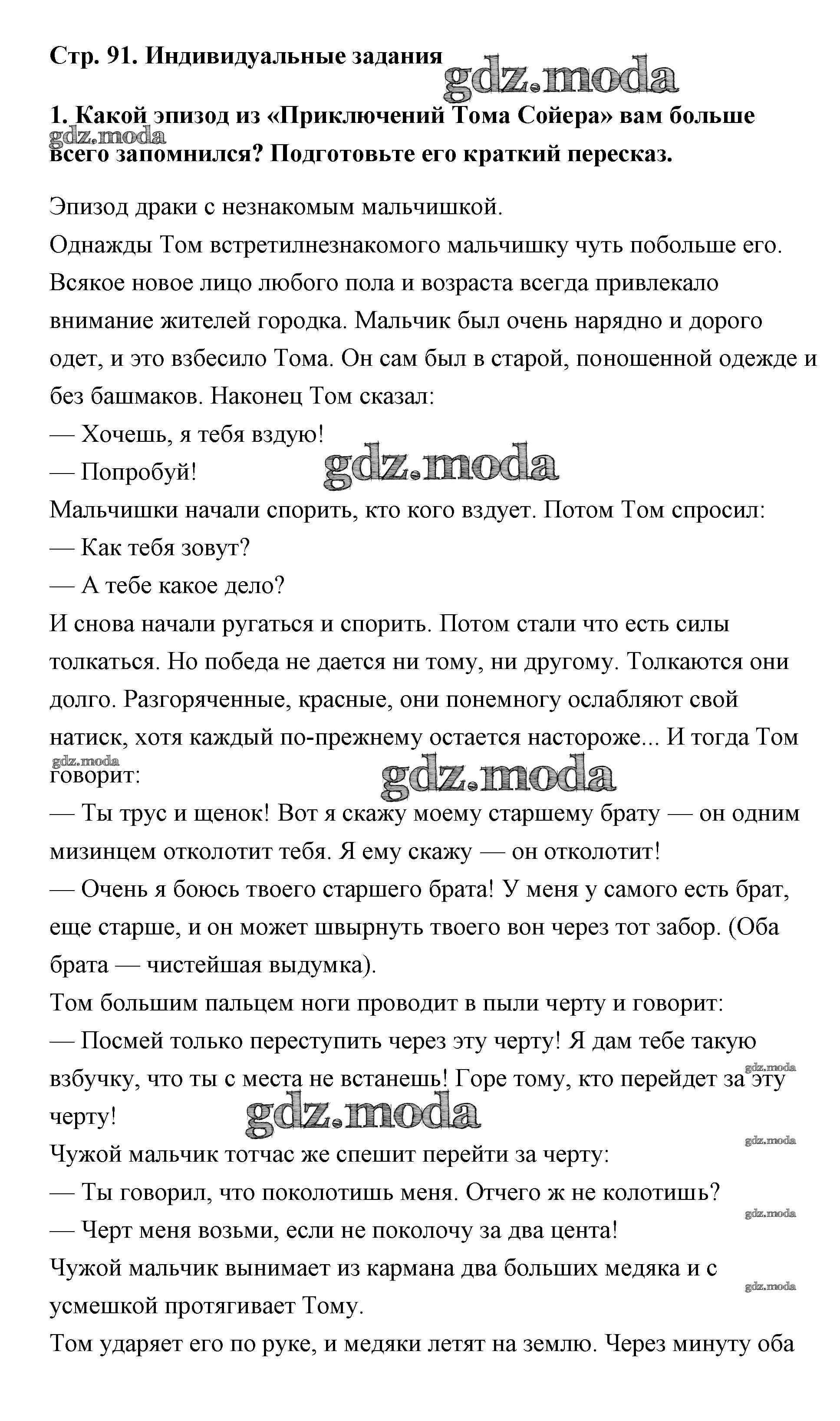 ОТВЕТ на задание № страница 91 Учебник по Литературе 5 класс Чертов