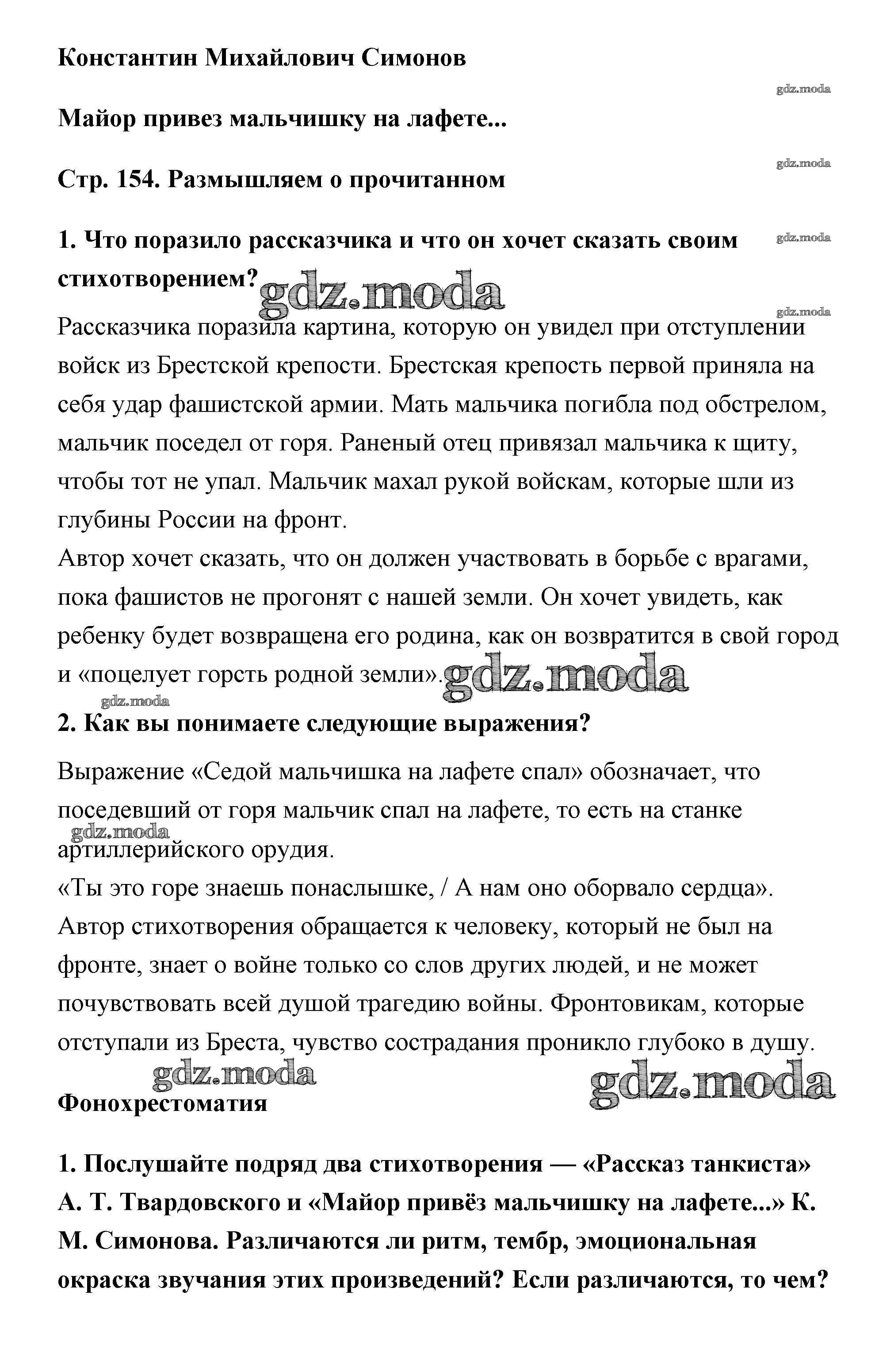ГДЗ решение к заданию № 154 Литература 5 класс Коровина Просвещение 2016 Часть 1, Часть 2 ФГОС бесплатно на гдз.мода!