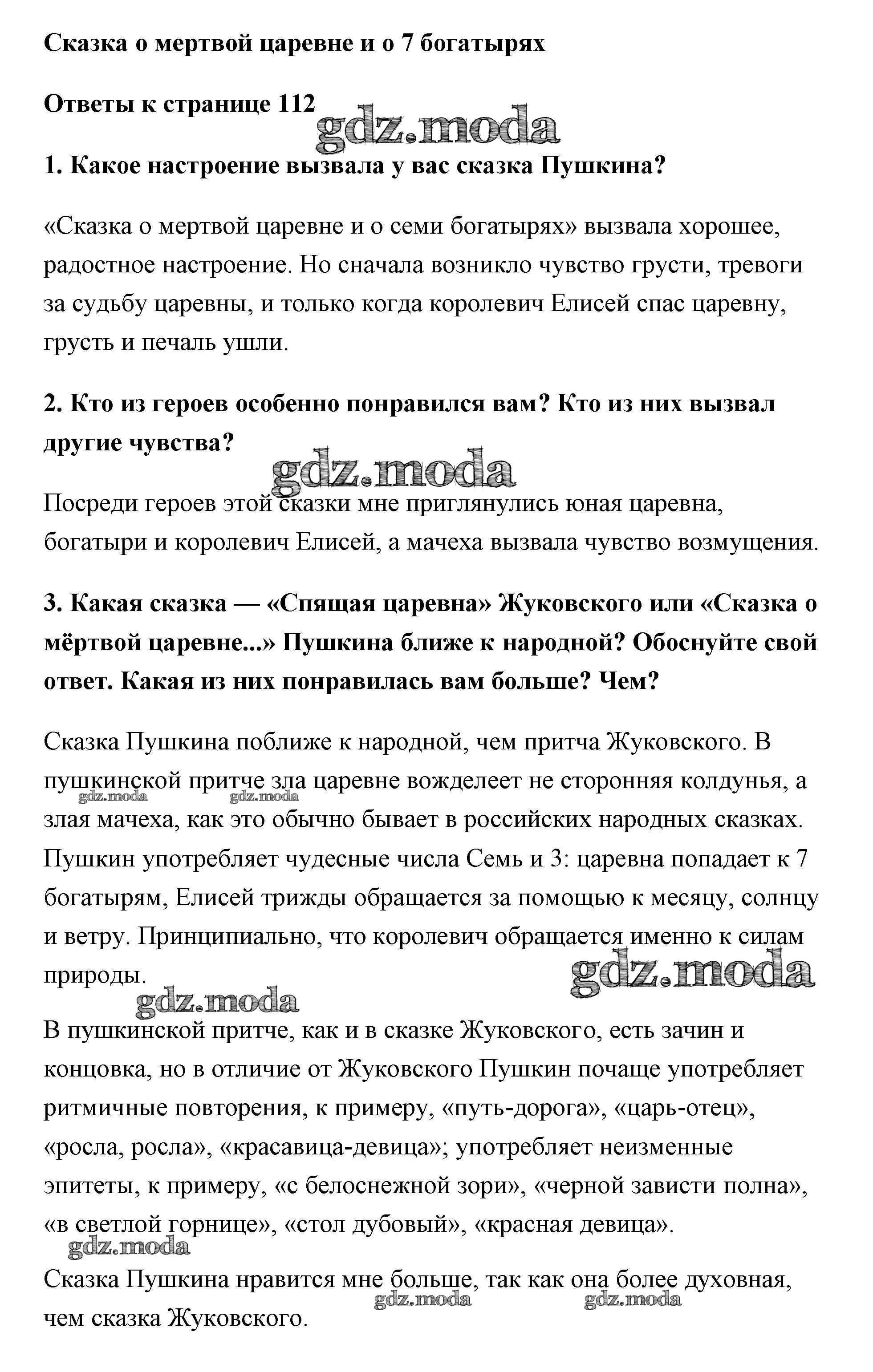 ГДЗ решение к заданию № 112 Литература 5 класс Коровина Просвещение 2016 Часть 1, Часть 2 ФГОС бесплатно на гдз.мода!