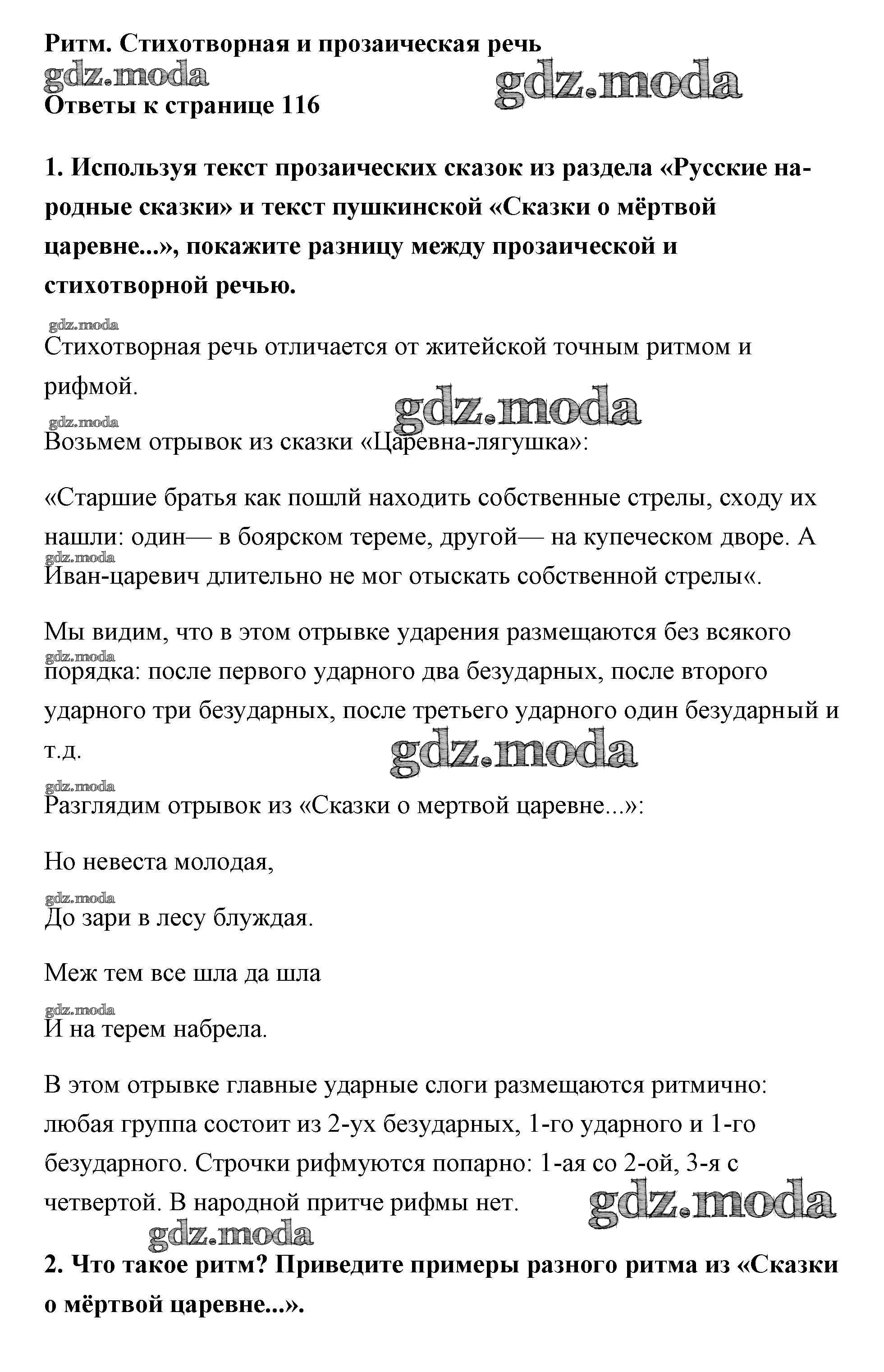 ГДЗ решение к заданию № 116 Литература 5 класс Коровина Просвещение 2016 Часть 1, Часть 2 ФГОС бесплатно на гдз.мода!