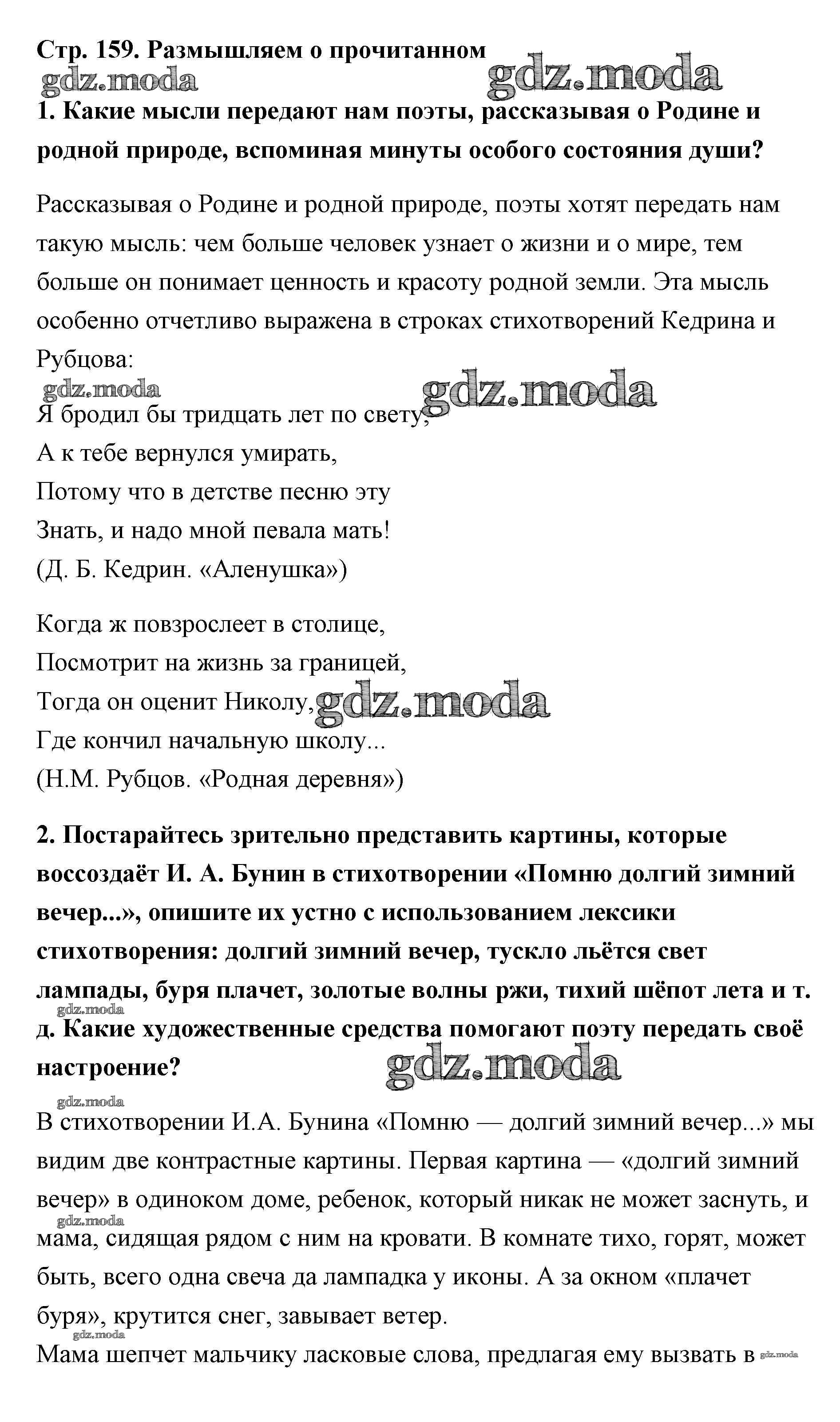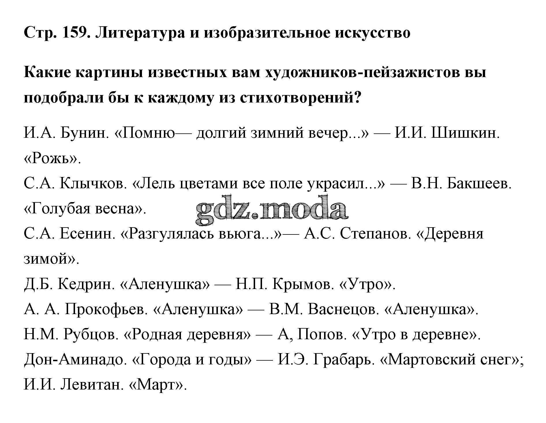 ГДЗ решение к заданию № 159 Литература 5 класс Коровина Просвещение 2016 Часть 1, Часть 2 ФГОС бесплатно на гдз.мода!