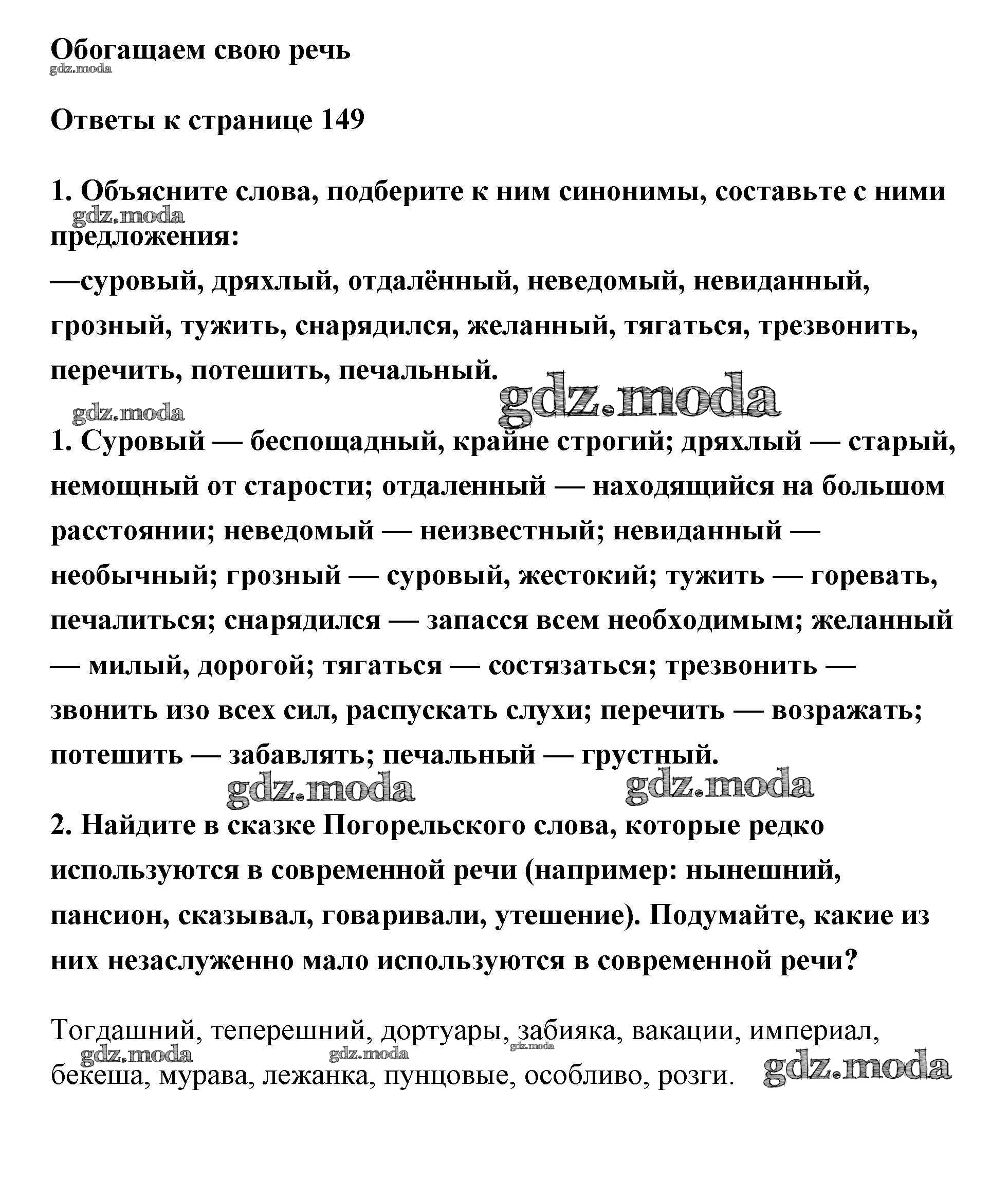 ГДЗ решение к заданию № 149 Литература 5 класс Коровина Просвещение 2016 Часть 1, Часть 2 ФГОС бесплатно на гдз.мода!