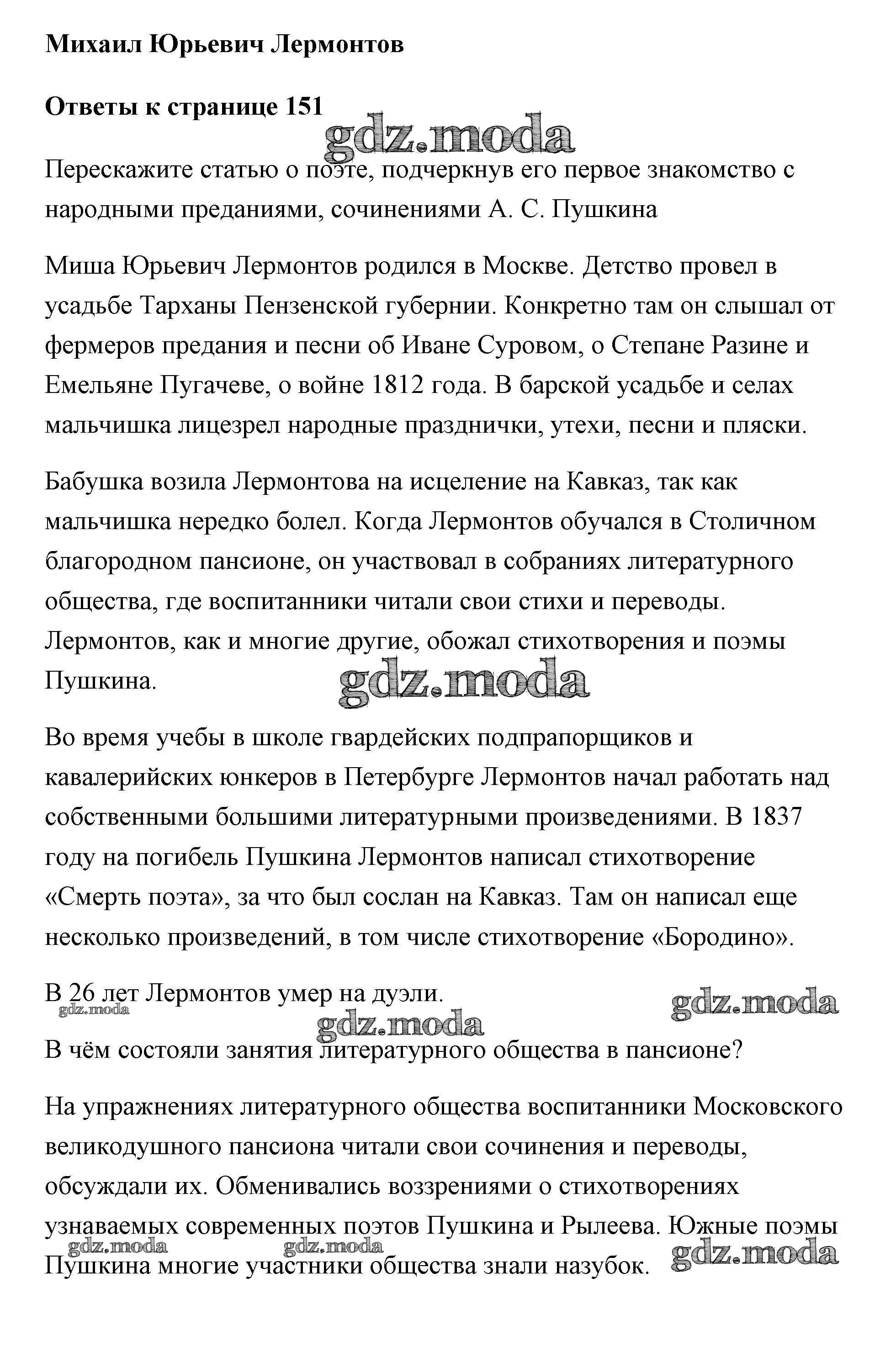 ОТВЕТ на задание № 151 Учебник по Литературе 5 класс Коровина