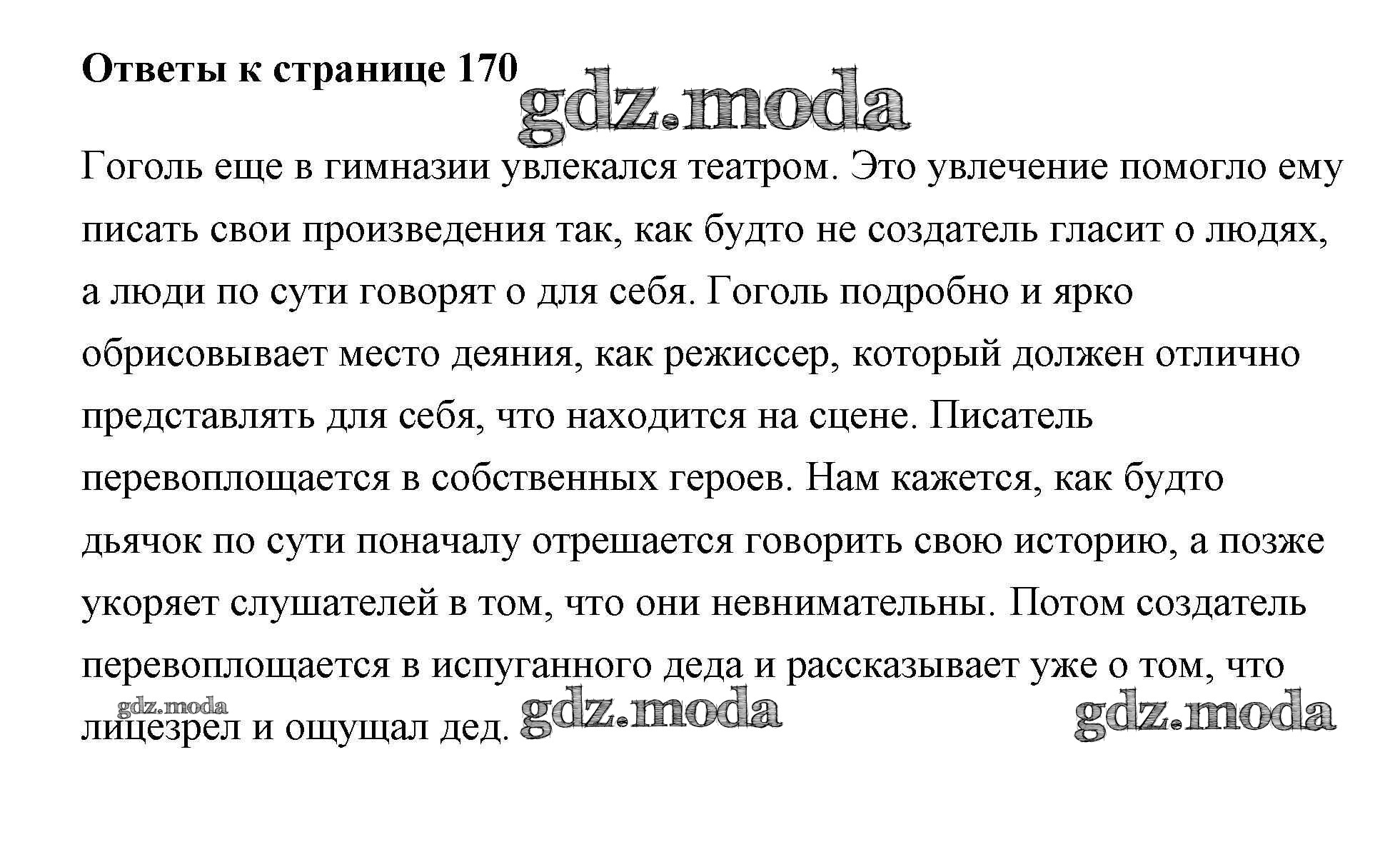ГДЗ решение к заданию № 170 Литература 5 класс Коровина Просвещение 2016 Часть 1, Часть 2 ФГОС бесплатно на гдз.мода!