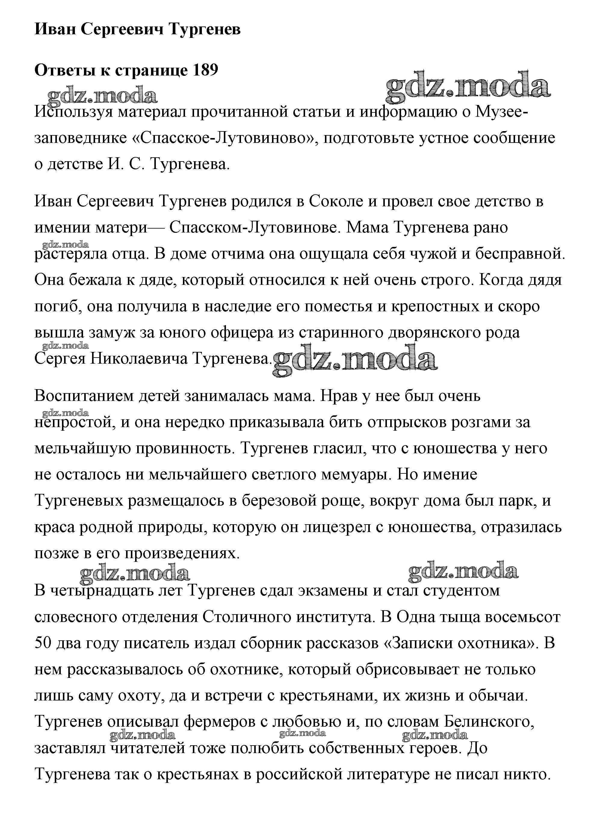 ОТВЕТ на задание № 189 Учебник по Литературе 5 класс Коровина