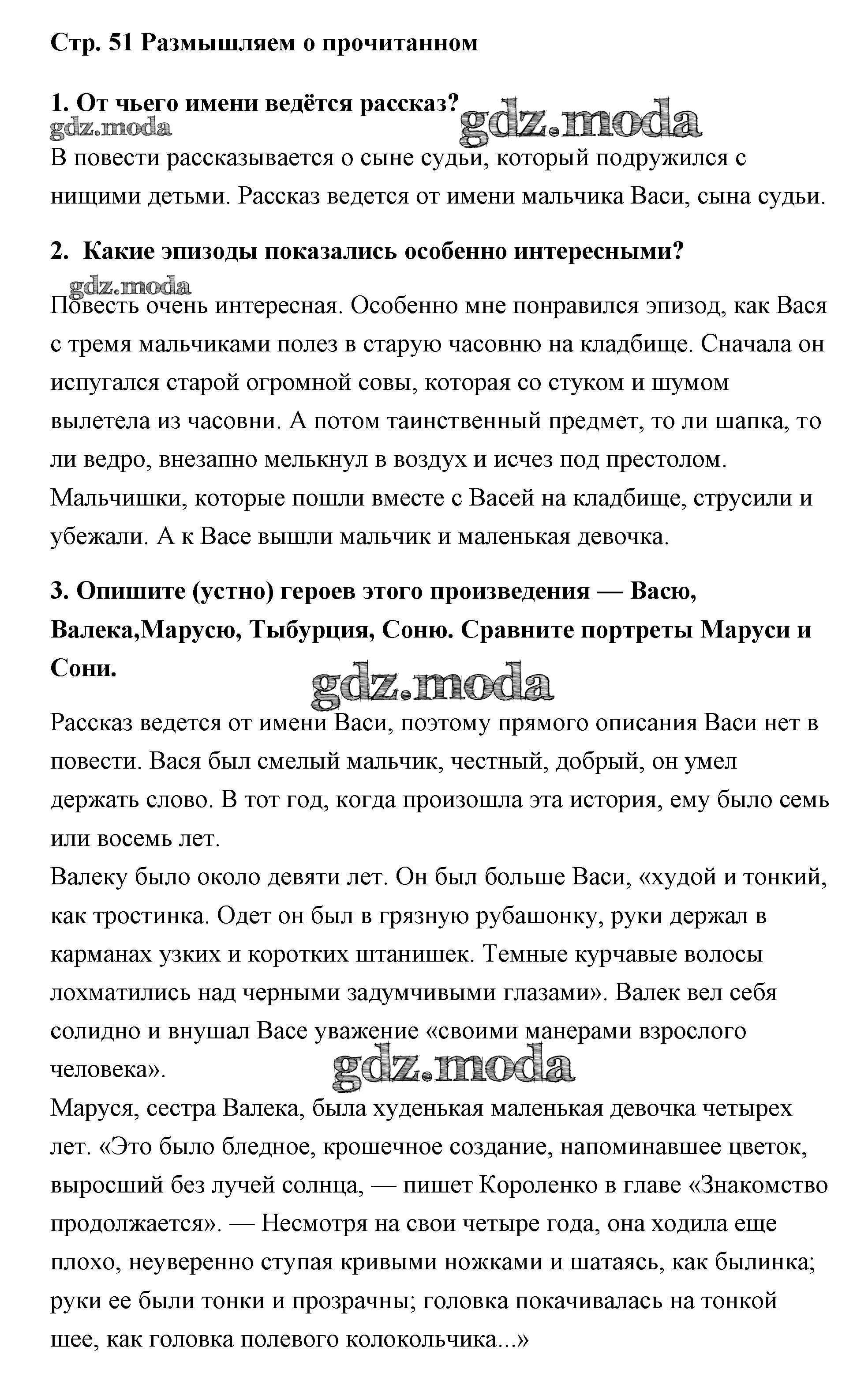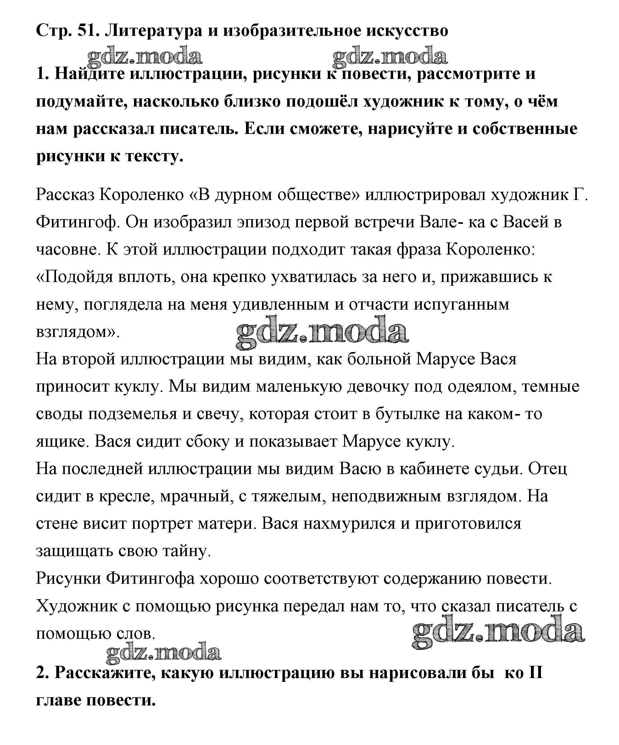 ГДЗ решение к заданию № 51 Литература 5 класс Коровина Просвещение 2016 Часть 1, Часть 2 ФГОС бесплатно на гдз.мода!