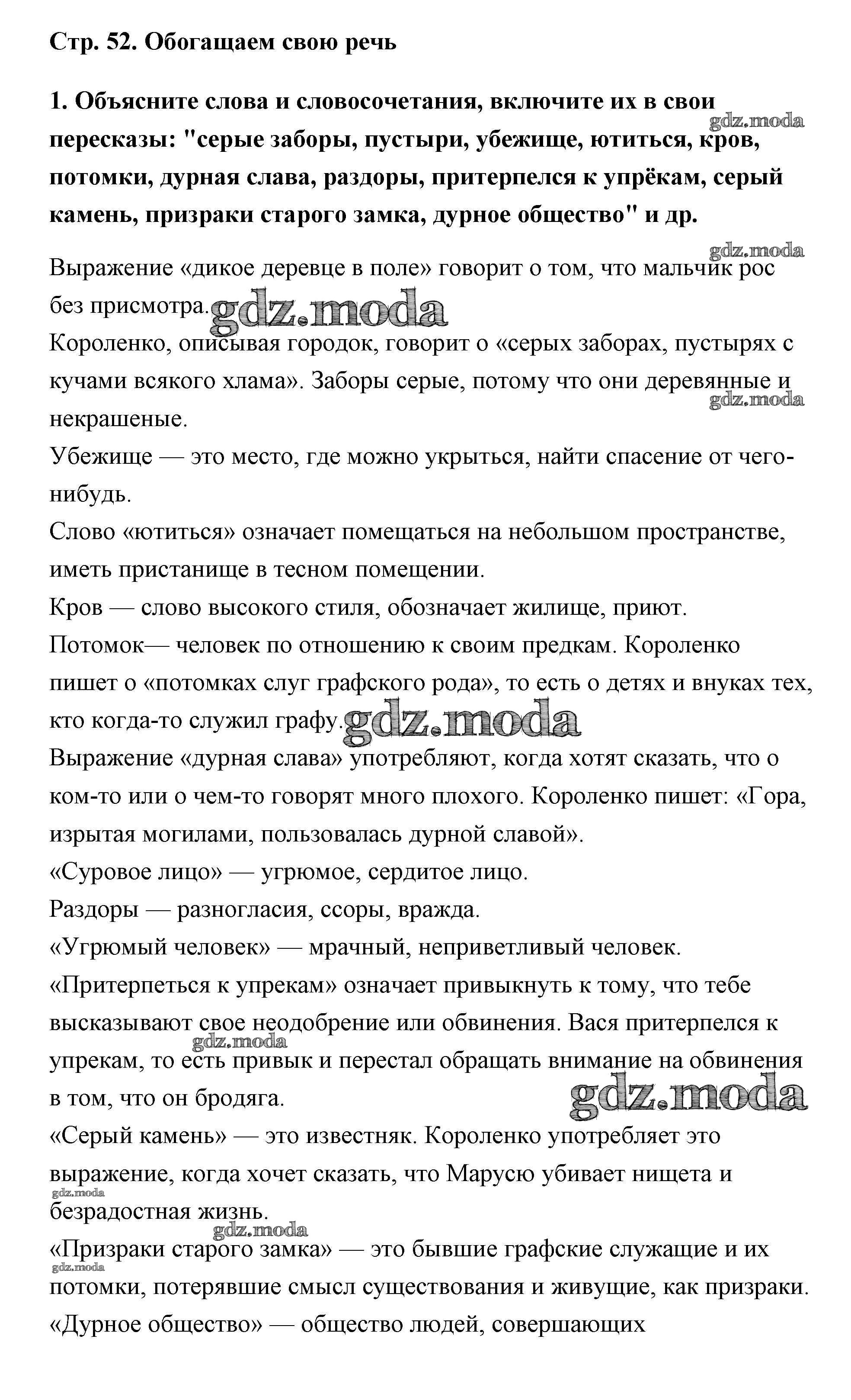 ГДЗ решение к заданию № 52 Литература 5 класс Коровина Просвещение 2016 Часть 1, Часть 2 ФГОС бесплатно на гдз.мода!